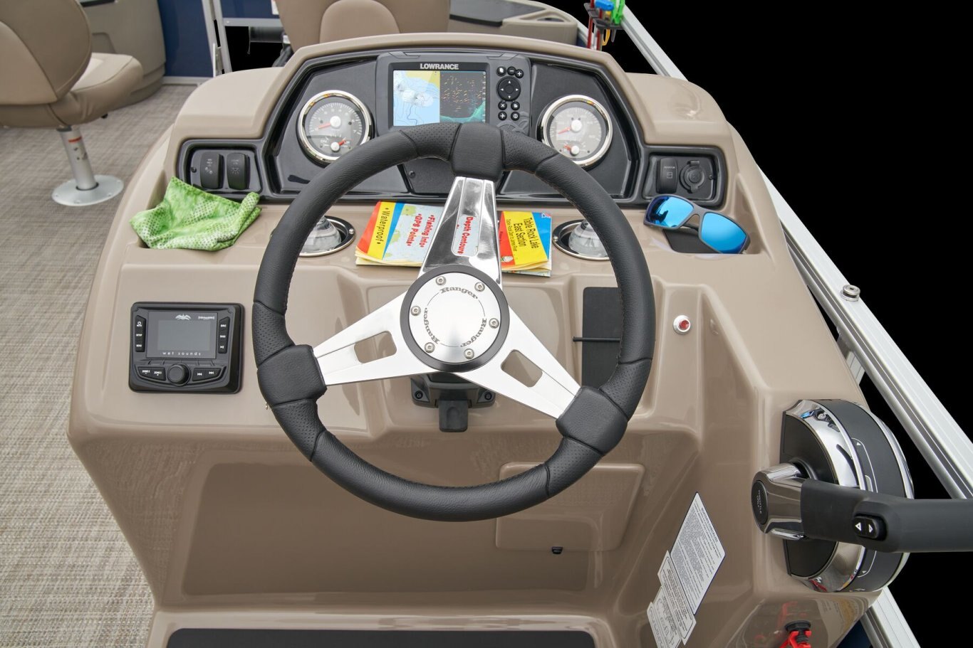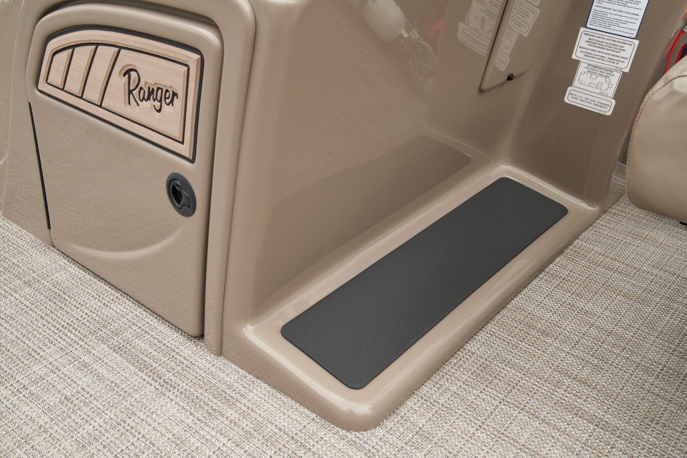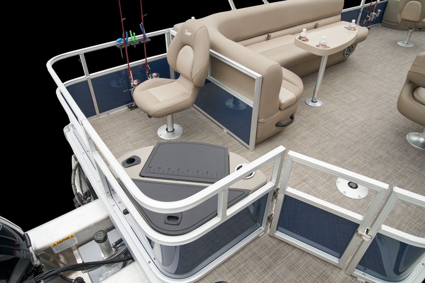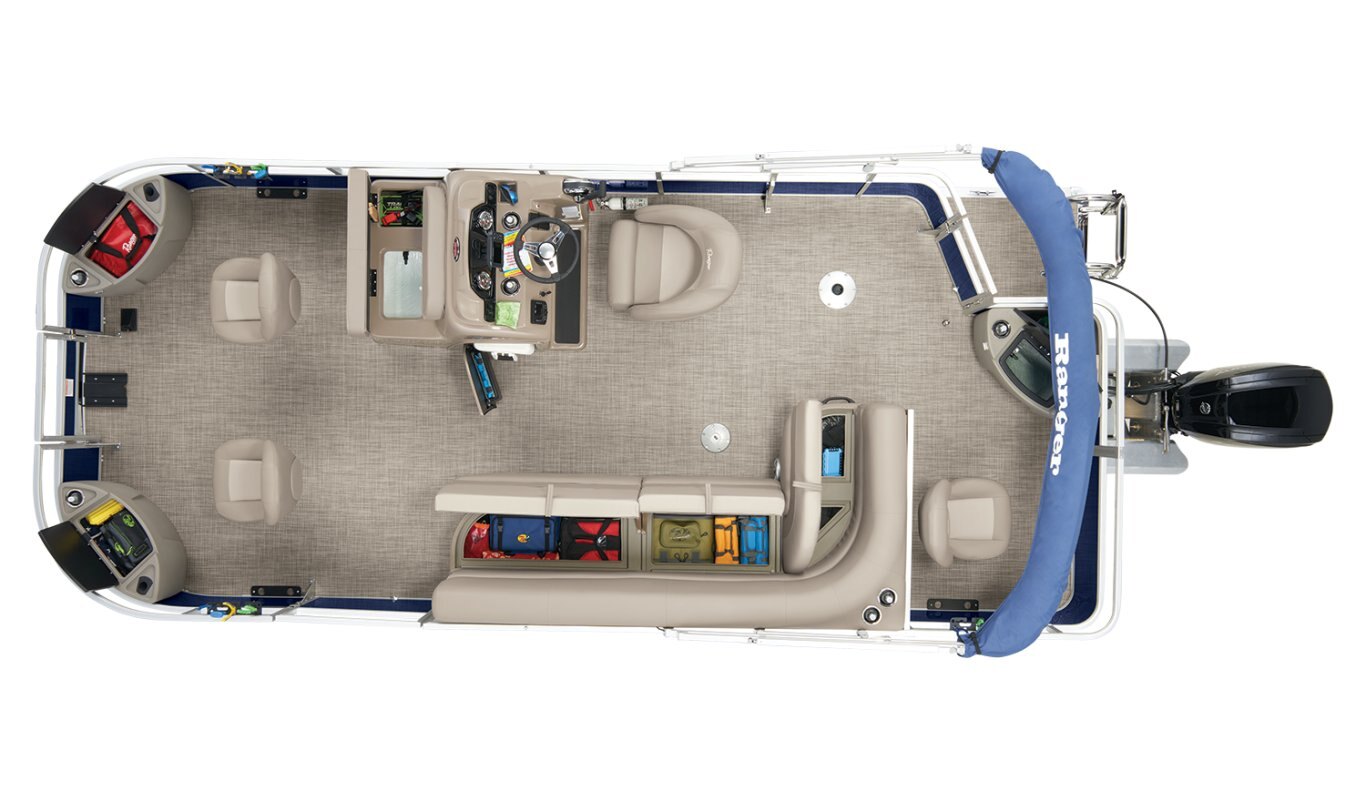 Perfect for sunsets and hooksetsYou and the family can cast lines like pros and maximize relaxation on the 2025 Ranger® Classic 200F fishing pontoon boat. Find your ideal fishing spot in the 2 swiveling, fold-down fishing chairs in the front and one in back. Both ends feature an aerated livewell, places to put your drinks, and rod holders. Those taking a break from fishing can take it easy in the L-shaped lounge or the bench in front of the helm. Up to 10 passengers can enjoy life on the water thanks to this pontoon's 19'10" deck. Pilots, find the perfect fishing spot by taking control of the sport steering wheel and ergonomical binnacle control box. Cool off under the standard 10' Dowco® EasyLift bimini top with LED courtesy lights and storage pockets. You'll also find plenty of storage space under the seat cushions, under the console, and in the front deck. When it's time to head back to the house or the fish aren't biting, the Wet Sounds® stereo can play the track of the day. The 2025 Ranger® Classic 200F comes standard with a 90hp Mercury® ELPT FourStroke Command Thrust outboard motor and has a recommended maximum 90hp rating. |