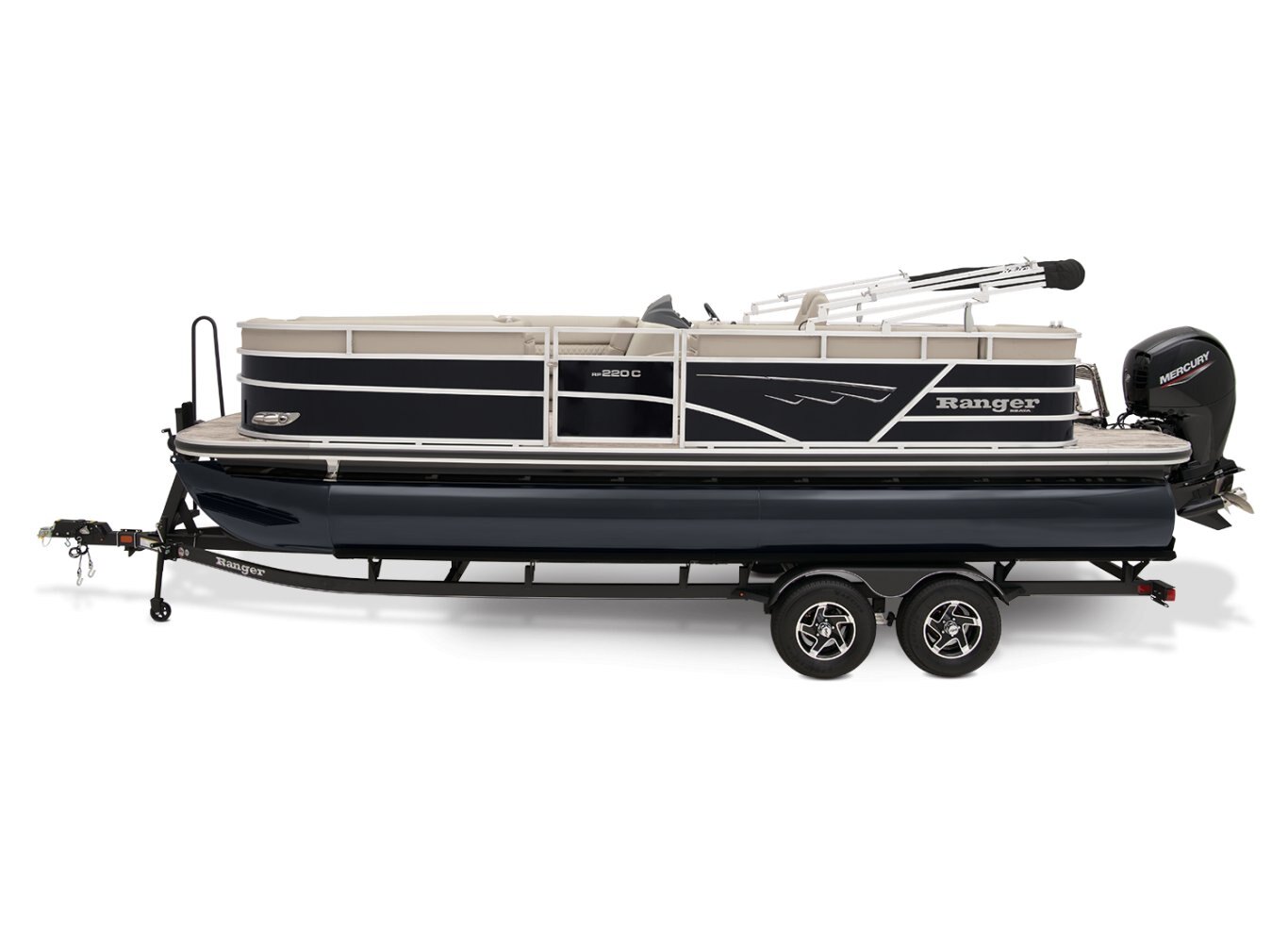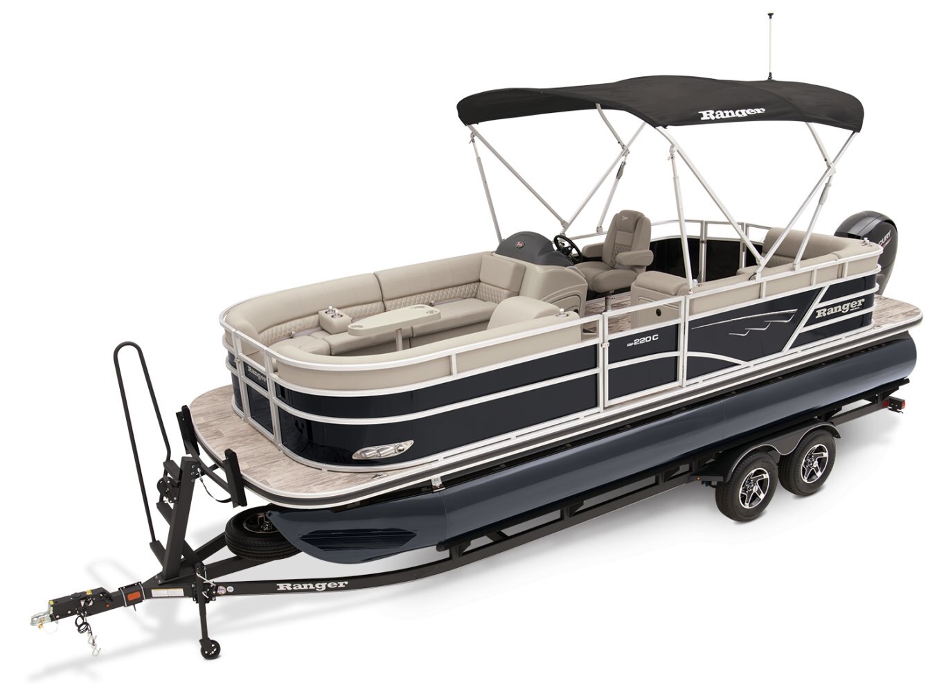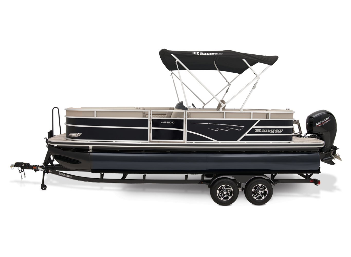 All kinds of capability for any and everythingThe 2025 Ranger® Reata® 220C is your new floating headquarters for your on-the-water adventures. With a long list of high-end features, a great amount of space, and quality craftsmanship, the Reata® 220C is a tough boat to beat. This cruise pontoon's 22'1" deck holds a crew of up to 10 and boasts an array of features built for fishing, relaxing, and fun in the sun. Cool off under the Dowco® EasyLift 10' bimini top as you relax in this pontoon's 3 corner lounges or the swiveling captain's chair at the helm. Customize your deck with the movable drink holders and tables. Stow gear and supplies in the under-seat storage compartments. The full-width aft swim platform has a mount for your optional ski-tow pylon and a fold-down ladder for easy reboarding for those who want to dive into the waters. Between the luxury, woven, cushioned floor, the 4-speaker, Bluetooth®-compatible Wet Sounds® stereo, and more, this pontoon is a big upgrade for your days on the lake. The 2025 Ranger® 220C comes standard with a 115hp Mercury® ELPT Pro XS® FourStroke Command Thrust outboard motor and has a recommended maximum 150hp rating. |