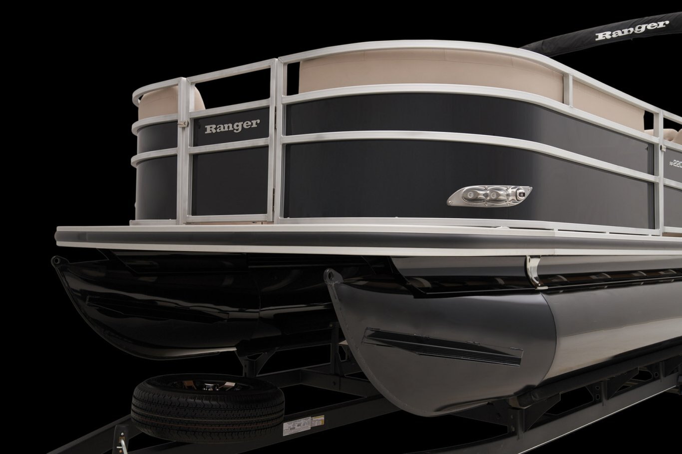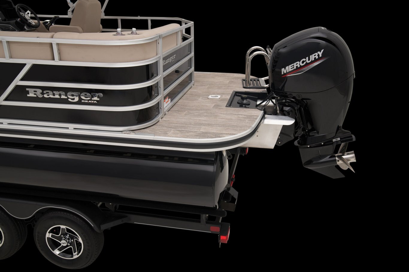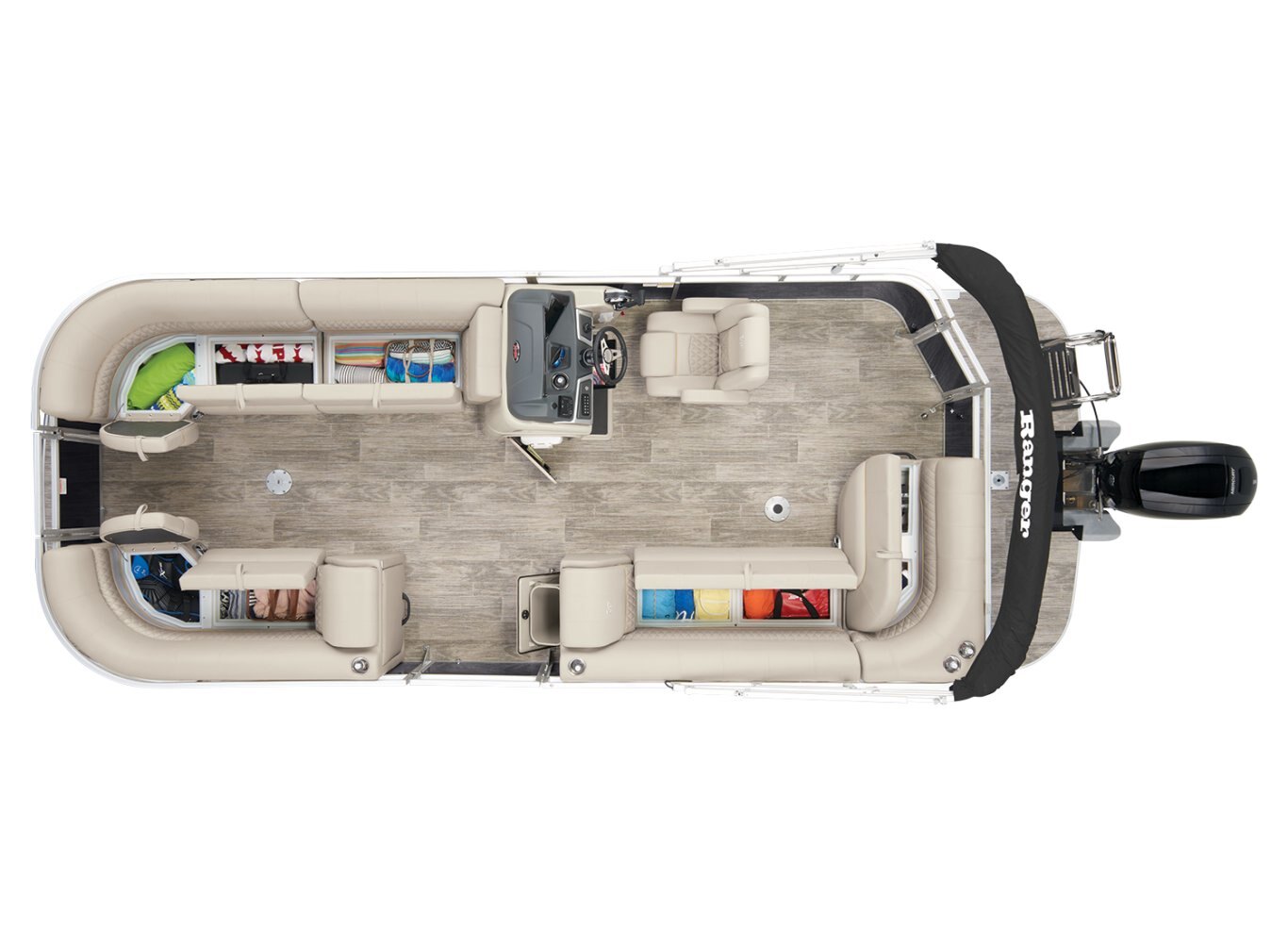 All kinds of capability for any and everythingThe 2025 Ranger® Reata® 220C is your new floating headquarters for your on-the-water adventures. With a long list of high-end features, a great amount of space, and quality craftsmanship, the Reata® 220C is a tough boat to beat. This cruise pontoon's 22'1" deck holds a crew of up to 10 and boasts an array of features built for fishing, relaxing, and fun in the sun. Cool off under the Dowco® EasyLift 10' bimini top as you relax in this pontoon's 3 corner lounges or the swiveling captain's chair at the helm. Customize your deck with the movable drink holders and tables. Stow gear and supplies in the under-seat storage compartments. The full-width aft swim platform has a mount for your optional ski-tow pylon and a fold-down ladder for easy reboarding for those who want to dive into the waters. Between the luxury, woven, cushioned floor, the 4-speaker, Bluetooth®-compatible Wet Sounds® stereo, and more, this pontoon is a big upgrade for your days on the lake. The 2025 Ranger® 220C comes standard with a 115hp Mercury® ELPT Pro XS® FourStroke Command Thrust outboard motor and has a recommended maximum 150hp rating. |
