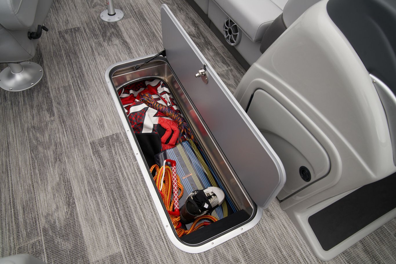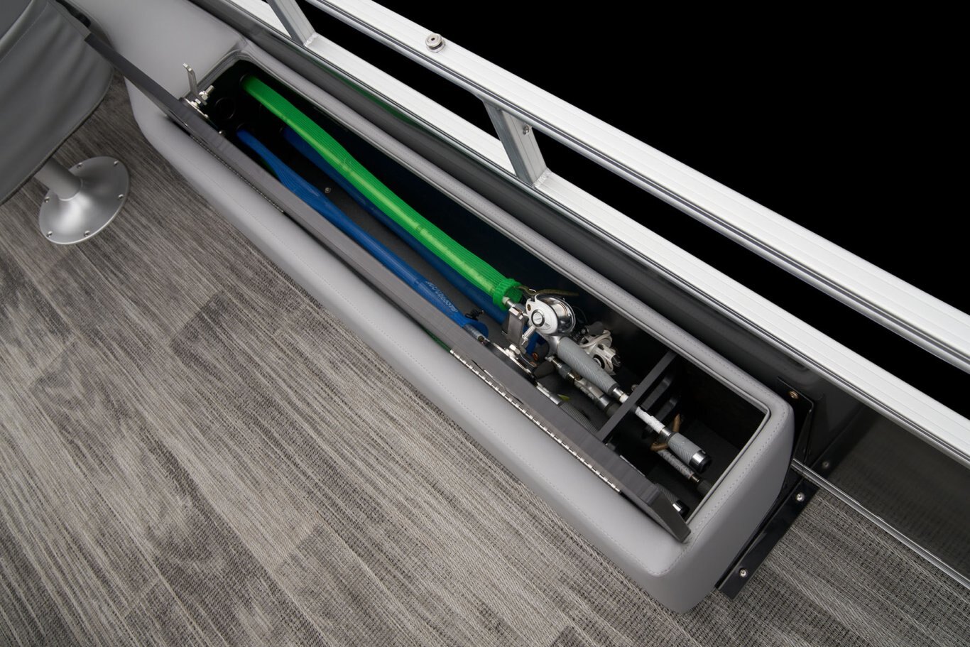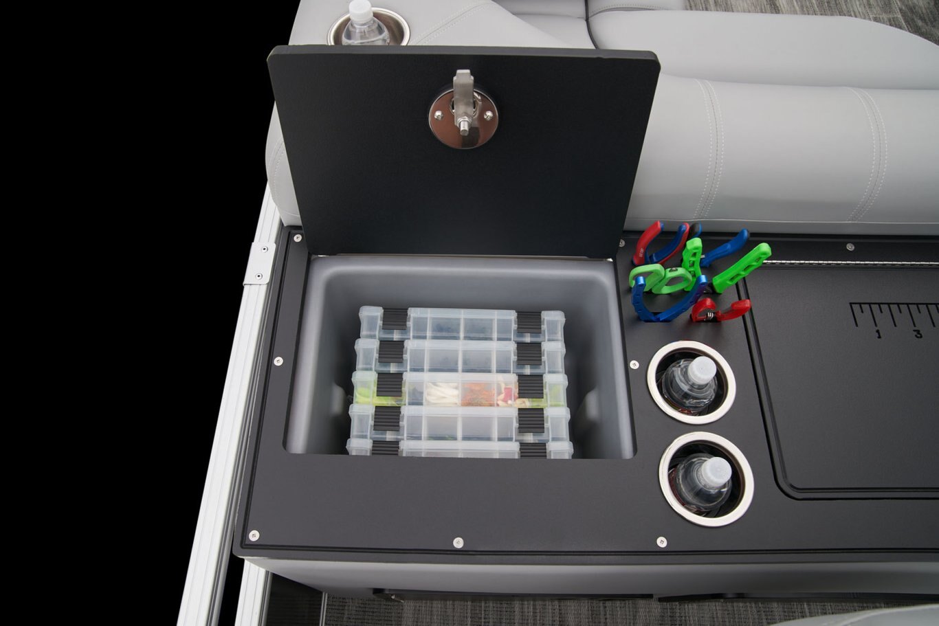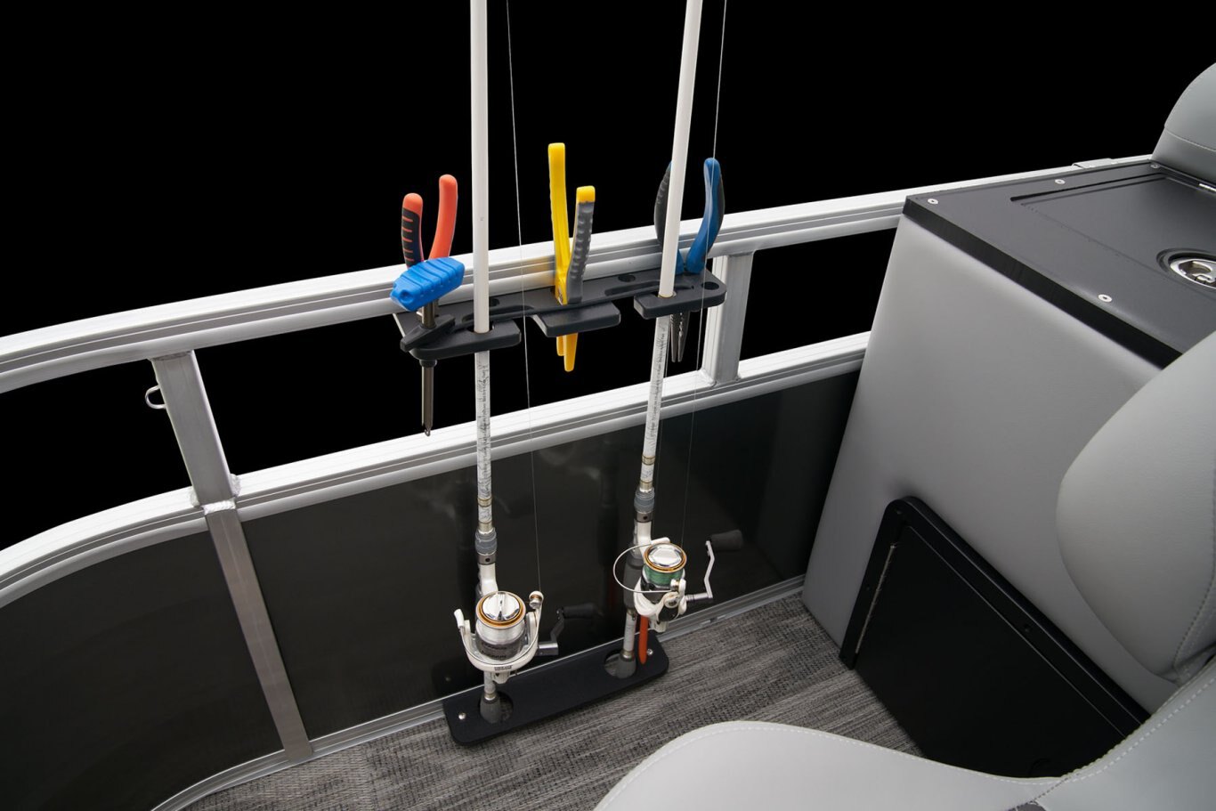 Catch a limit of fun every timeMaximize your fishing pontoon's space and power! The 2025 Ranger® Reata® 223FC Fish & Cruise delivers exciting days not only for anglers, but for everyone looking for fun on the lake. This is the biggest Fish & Cruise crossover in the Ranger® lineup—and the most luxurious. Its layout is engineered to give up to 11 friends and family a comfortable and exciting space. 2 lounges, 2 reclining port chairs with self-leveling arms, and a deluxe captain's chair are built for relaxing. The pilot sits before a fiberglass console equipped with a Wet Sounds® stereo, digital dash touch screen, and a 12-button switch panel over an in-console cooler compartment to keep beverages close by. Serious anglers can grab their setups from the lockable rod compartment and set up shop in 1 of the 2 chairs in the aft fishing deck. This deck also sports an aerated livewell and a holder for your rods and tools. If the sun's beating down overhead, expand the color-matched 10' bimini top for some shade so you can fish the day away. The 2025 Ranger® Reata® 223FC comes standard with a 200hp Mercury® L FourStroke outboard motor and has a recommended maximum 200hp rating. |