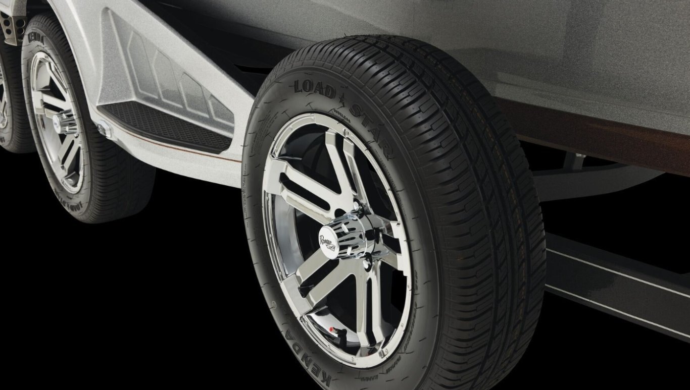 Trailer Features Ranger Trail® trailer w/ torsion axles and c-channel frame Ranger® Road Armor Equipped® trailer protectant coating 14" Raptor painted & machined aluminum wheels w/ matching spare Ranger Trail® Vault® Hub lubrication system Fiberglass fenders w/ step pads Fiberglass Bow Step - color-matched to fenders Hydraulic surge disc brakes Swing-away tongue Integrated center-swing jack finished in black powdercoat LED lighting LED back-up lights Stainless steel ratcheting tie-downs NMMA®/NATM certified