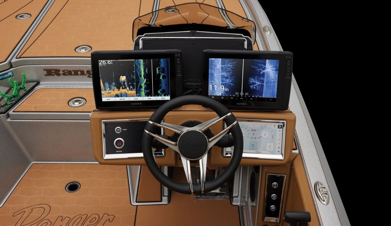 KEY FEATURES Ultra-premium Buckskin interior trim Built to be Yours™ - Available with a wide array of custom-matched trolling motors, electronics, and accessories Heated Cloud 9™ Air-Ride SRS Driver Seating Push-to-Start Ignition Ranger R.I.D.E. - integrating full-boat control and monitoring via 9" touchscreen Pultruded Fiberglass Transom Push-to-Close Latches