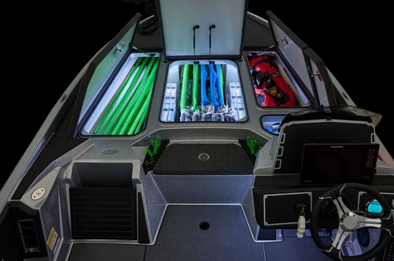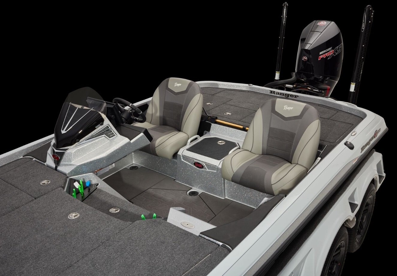 The Ranger Z520 delivers top-tier performance and style in a package that boasts premium essentials you need to be your best on the water. A Ranger Umbilical™ dedicated electronics harness simplifies wiring, while push-button solid-state switching and a keyed ignition adds more reliability to controls. A MercMonitor with SmartCraft gauges keep you in the know while push-to-close latches remove tripping hazards and make accessing your boxes easier. For increased fishability we’ve added a Minn Kota® Fortrex and optional BBT dual bow graph mount.