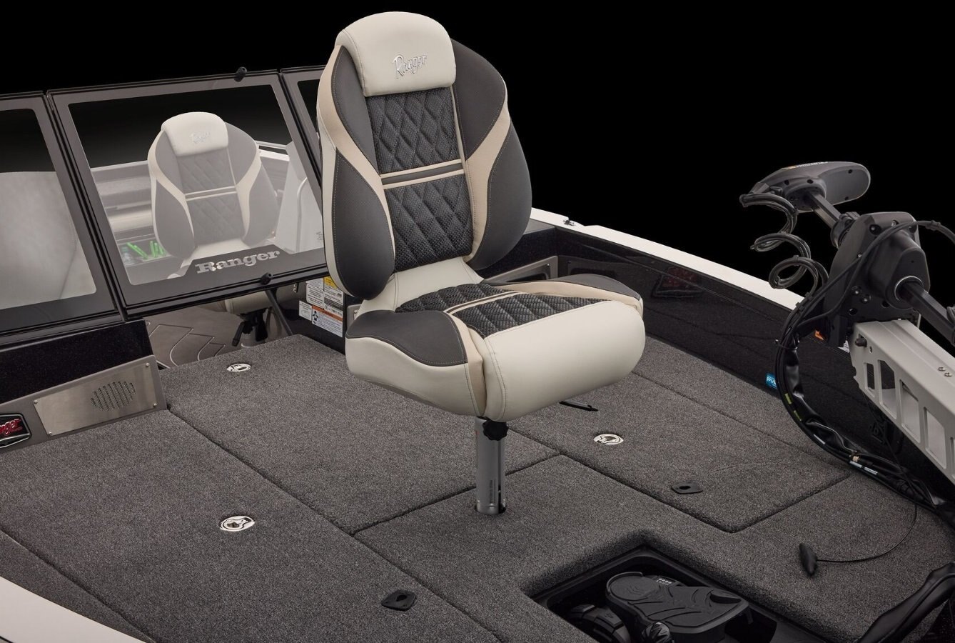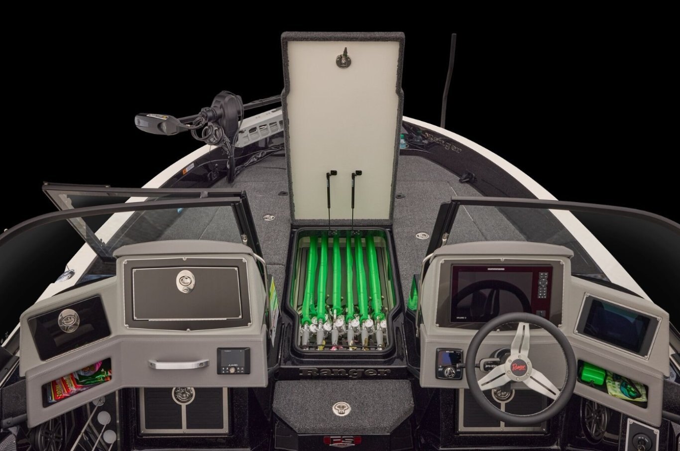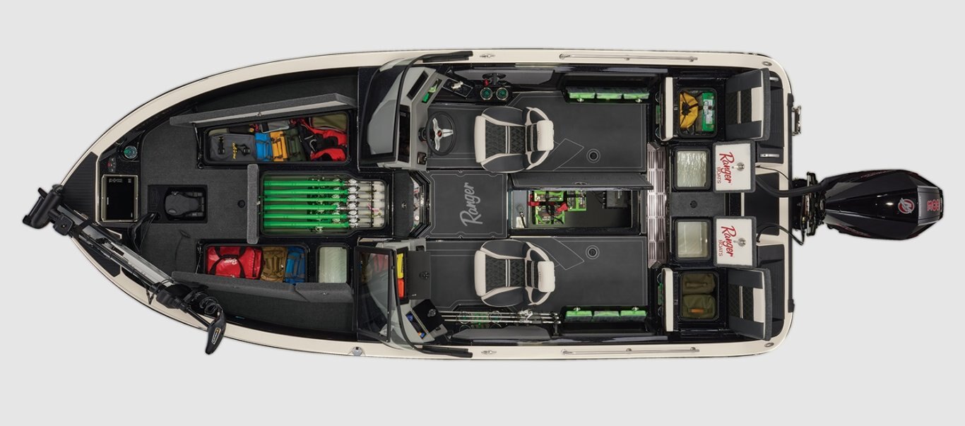 Ranger® Boats never stops innovating, and the all-new 620xFS PRO is proof. This tournament-ready walleye boat blends family versatility with head-turning performance. The Total Command Cockpit™ offers expanded space behind an optional walk-thru windshield, while the Ranger® System Monitor touchscreen puts control of everything—from livewells to playlists—at your fingertips. Integrated aft jump seats provide even more seating for your crew without sacrificing fishing space, and in-gunnel storage keeps your gear organized and secure. Premium fishing features like a raised platform, Minn Kota® trolling motor, and Lowrance® electronics make this boat a serious competitor.