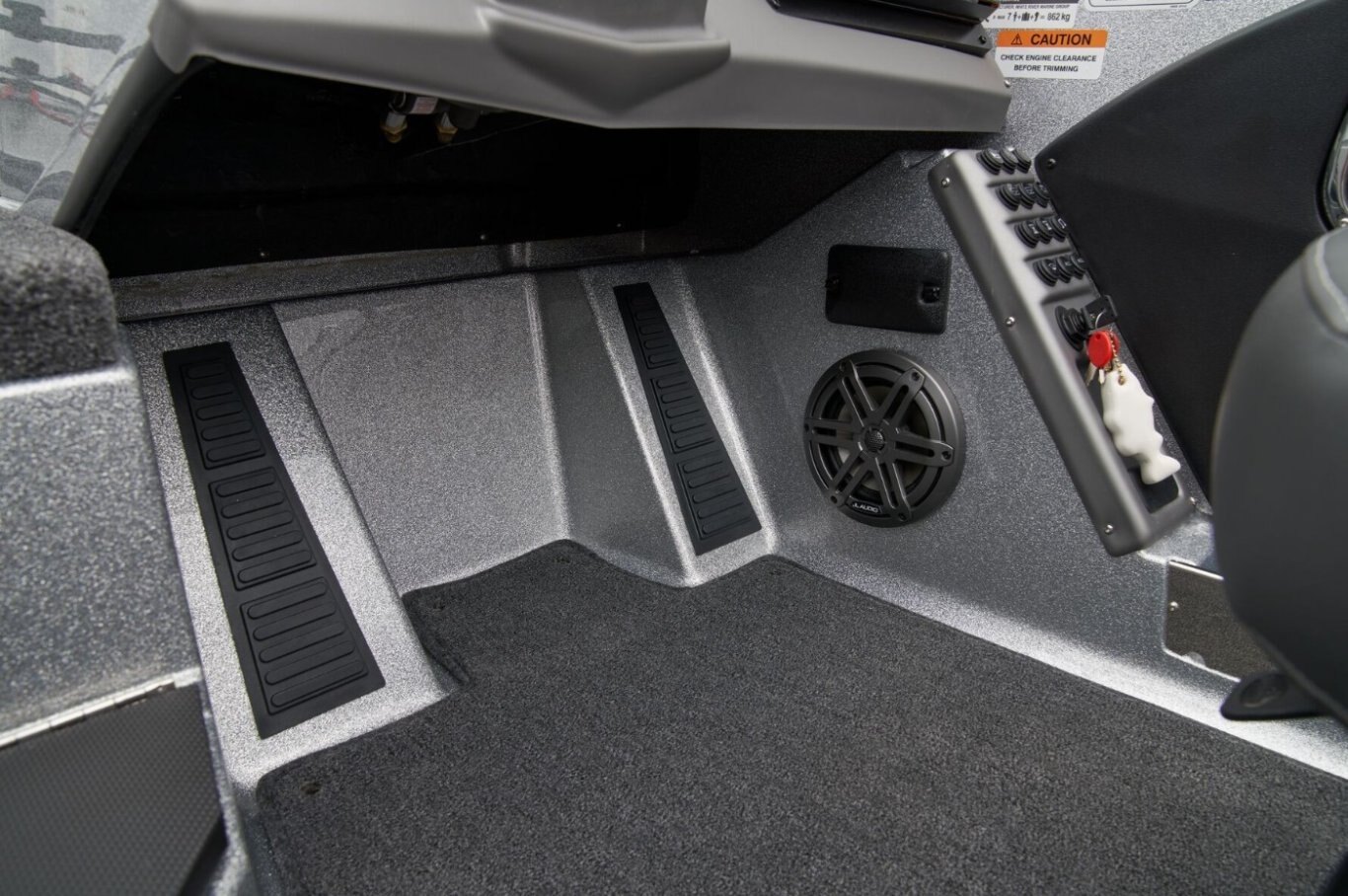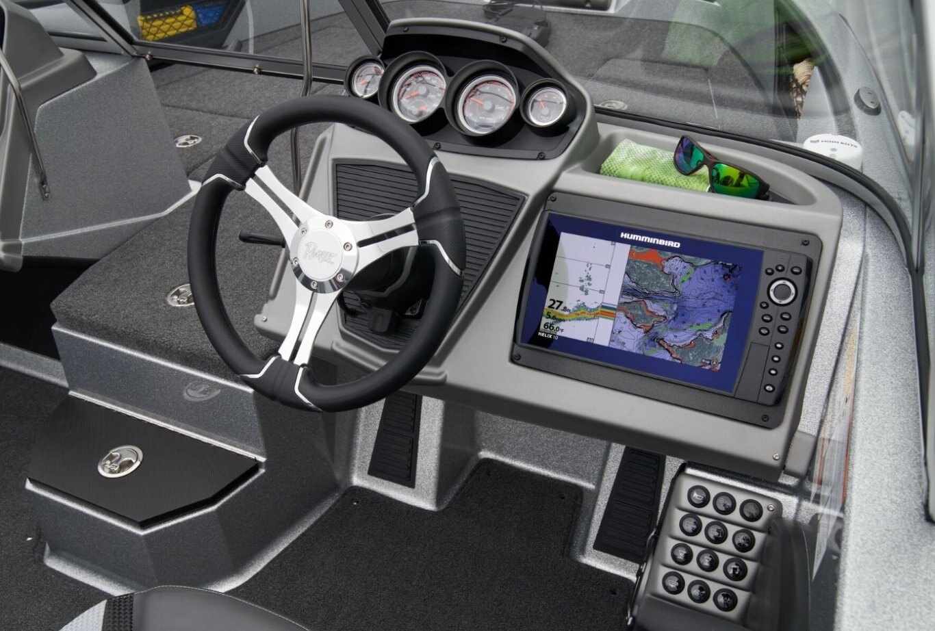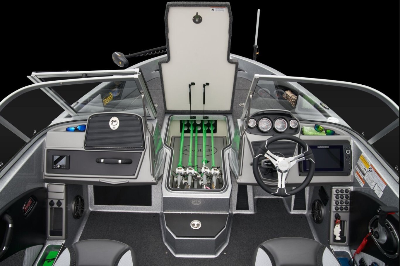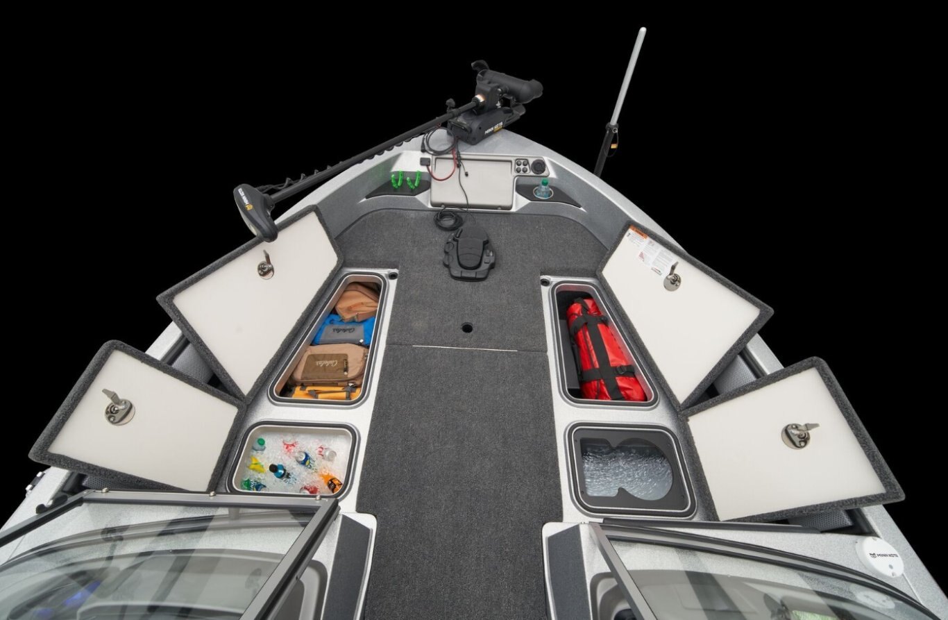 BIG PERFORMANCE, VALUE AND FUNOne of our more popular Deep V models is highlighted by a wealth of fishing features that are complemented by creature comforts that put the 1880MS in a class of its own. And with a new bow panel that offers greater convenience and functionality, there’s even more to love. A broad beam and 200-horsepower rating deliver spunk and stability to the 18-foot, 10-inch hull that features our exclusive Rite-Track Keel® for superb handling and smooth tracking. A massive front deck is the perfect casting platform and stows a wealth of tackle and gear within the gasketed, lockable boxes below your feet. The aft deck conceals jump seats with storage below for even greater versatility. Inside you’ll find a wide-open cockpit that can be perfectly tailored to be a hardcore fishing machine or a smooth, easy-riding family fun vessel ready for tubing, skiing, and the like. A full complement of gear of any stripe conceals within the 1880’s clever storages from bow to stern. Integrated tool and drink holders, hand-built seats, stainless-steel cleats, and hardware add class and convenience to this capable performer. Naturally, a custom-built Ranger Trail trailer accompanies each 1880 with bunks, supports, fenders, and brakes specially crafted to make trailering as safe and effortless as possible. From derby days to laid-back days off, you’ll find more features and versatility in the 1880 than in any other boat in its class. |