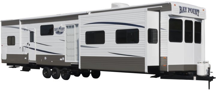 The Baypoint destination trailers are spacious travel trailers designed for permanent site set up while offering great features not found in most equivalent units.