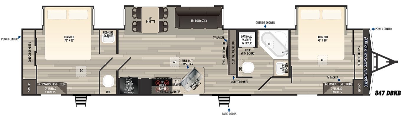 The Baypoint destination trailers are spacious travel trailers designed for permanent site set up while offering great features not found in most equivalent units.