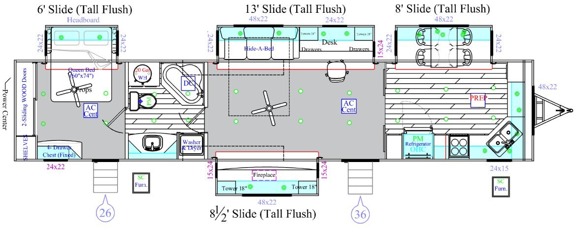 With larger living areas built for full time use, our Travel Trailers are sturdy enough for the long haul, and often sought out by those who really enjoy living in their units, as opposed to the traditional weekend camper. We allow you, the end user to decide on the size, floorplan, décor, and equipment options that best suit your preferences and needs.