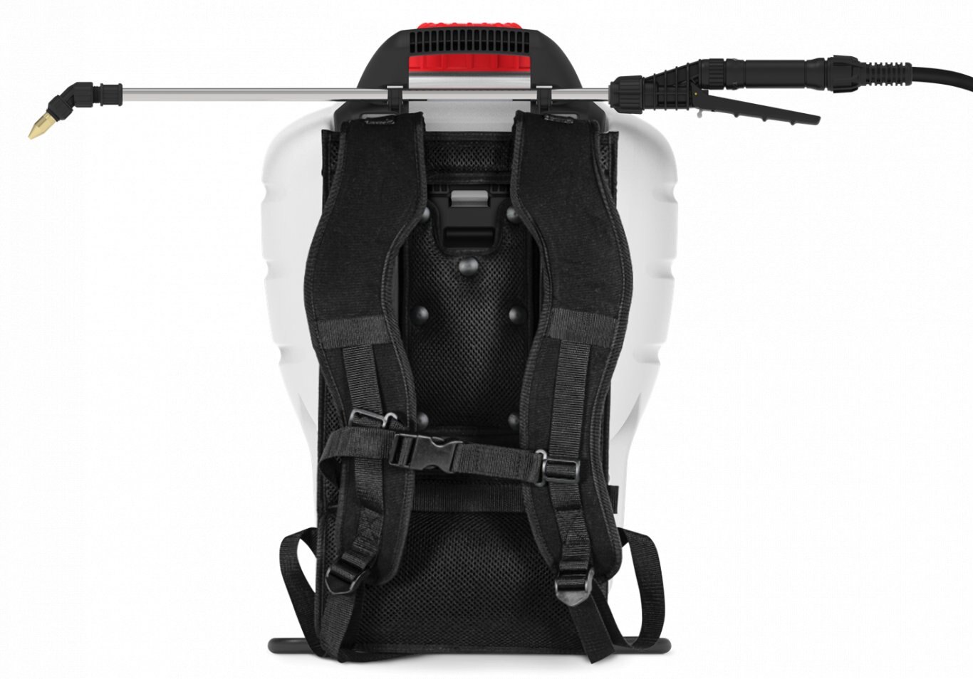 4 Gallon Battery Backpack Sprayer Internal "No Leak" pump design. Can be used with wettable powders and liquids for all applications. 150 max PSI; 25 psi Pressure regulator delivers constant pressure to apply lawn chemicals. Cap assembly with Viton check valve. Pro Shut-off with 50” reinforced PVC hose & strain relief nut (to keep hose from kinking). 25” Stainless Steel Wand with Poly Liner. Nozzle Kit (3) - (Brass adjustable, red poly high-volume fan, yellow poly high-volume fan, cap nut, Viton gasket). No pumping required! Same features as our manual 4-gallon sprayer but using an 18 volt battery to activate the pump versus manually doing it. Up to 4 hours of spray duration on a single charge or 50 gallons of liquid. Impact resistant battery compartment keeps the battery concealed and away from liquid that may cause damage. Easily accessible filters in cap, shutoff, and pump reduce build up of large solids which may affect performance. On/off switch - that's it! 1 year warranty. |