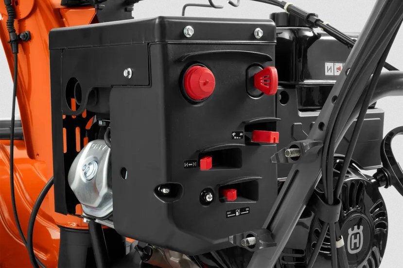 Husqvarna ST 324 has been developed for landowners who need an ergonomic, high-capacity, robust and durable snow thrower that comfortably clears large areas. It has been designed for frequent use in all snow conditions, 15-60 cm. The two-stage system, friction drive, power steering, high capacity belt system and extra large tyres ensure easy operation. Throughout, it has heavy-duty components for maximum durability in all conditions, such as its robust auger housing with tie strap auger support, cast iron auger gear box, and cast iron impeller. Features loop handle, heated handle grips, LED headlight, electric starter and industry exclusive hight adjustable handle for comfortable work in all weather conditions. |