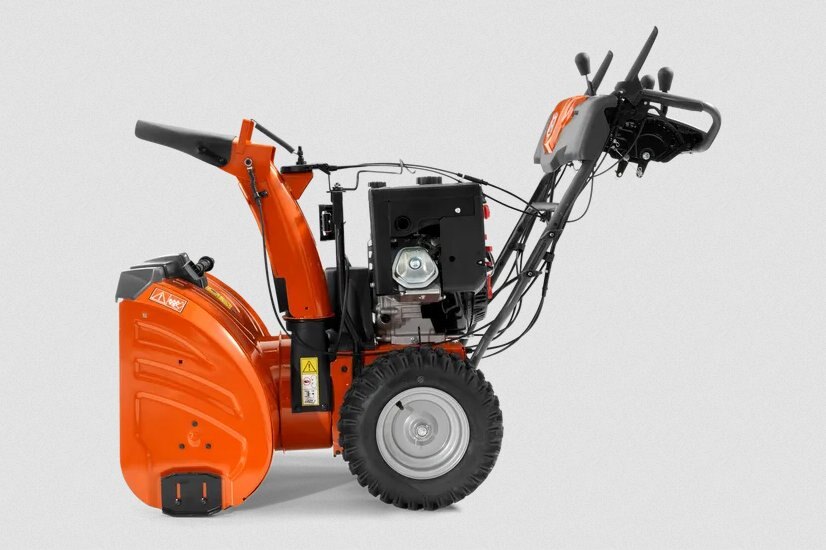 Husqvarna ST 327 has been developed for landowners who need an ergonomic, high-capacity, robust and durable snow thrower that comfortably clears large areas. It has been designed for frequent use in all snow conditions, 15-60 cm. The two-stage system, friction drive, power steering, high capacity belt system and extra large tyres ensure easy operation. Throughout, it has heavy-duty components for maximum durability in all conditions, such as its robust auger housing with tie strap auger support, cast iron auger gear box, and cast iron impeller. Features loop handle, heated handle grips, LED headlight, electric starter and industry exclusive hight adjustable handle for comfortable work in all weather conditions. |