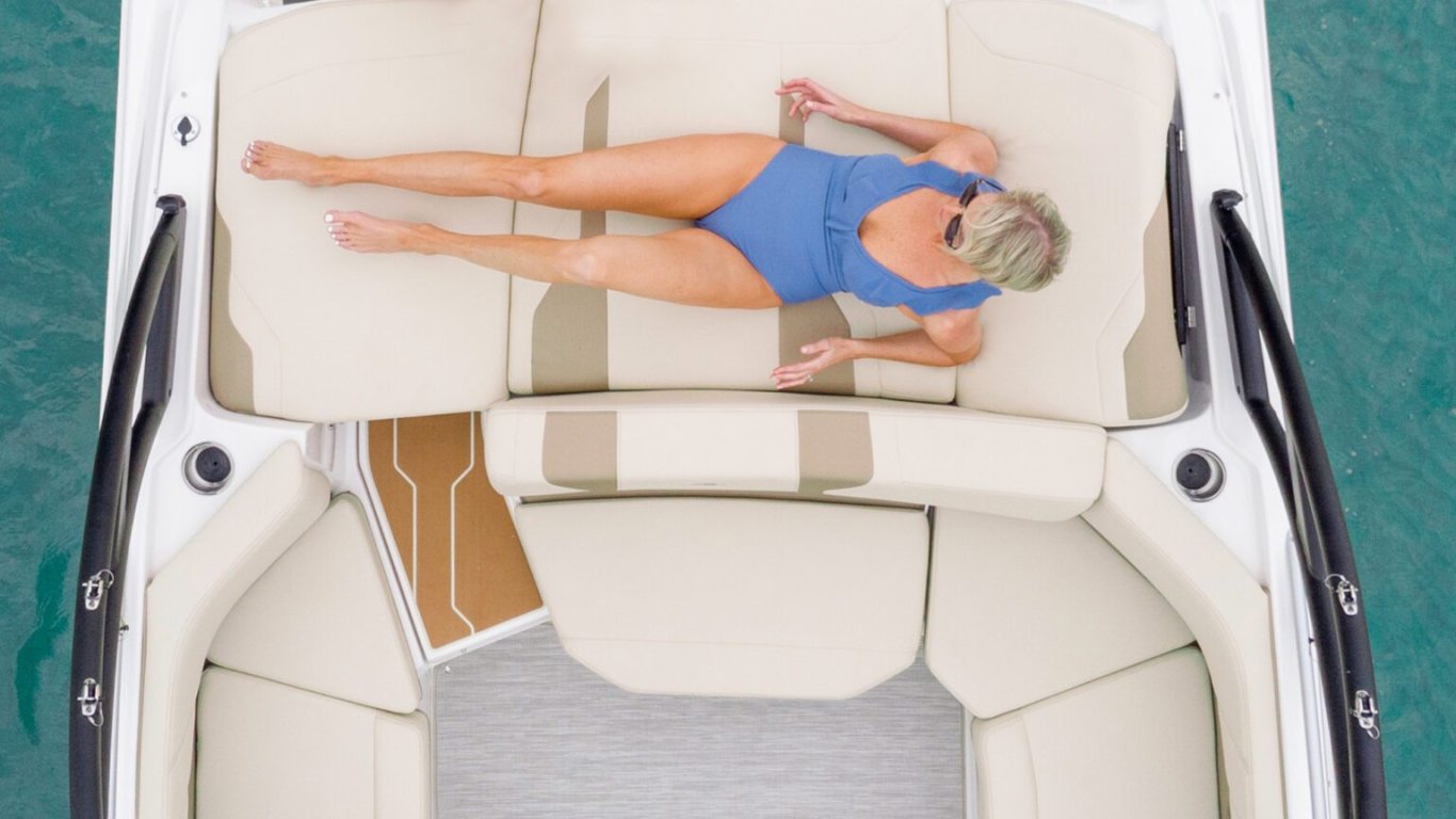 Relax in style on the Sunpad, a spacious and comfortable area for sunbathing and enjoying the sun-drenched moments on your boat. |