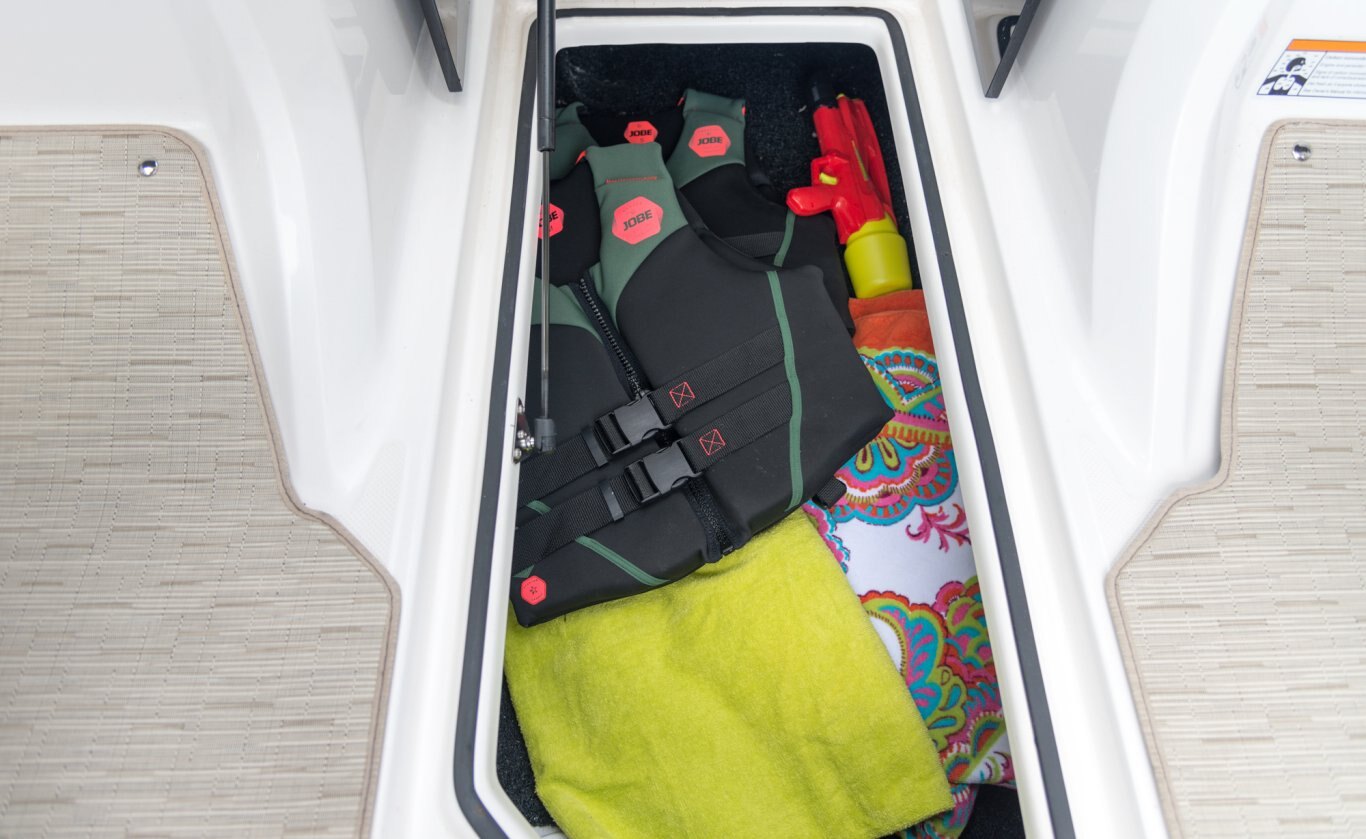 The 21 OBX features a spacious and low-to-the-water swim platform that gets you close to the water's edge, and a ladder is tucked under a fiberglass cover so it doesn't sacrifice your swim platform space. |