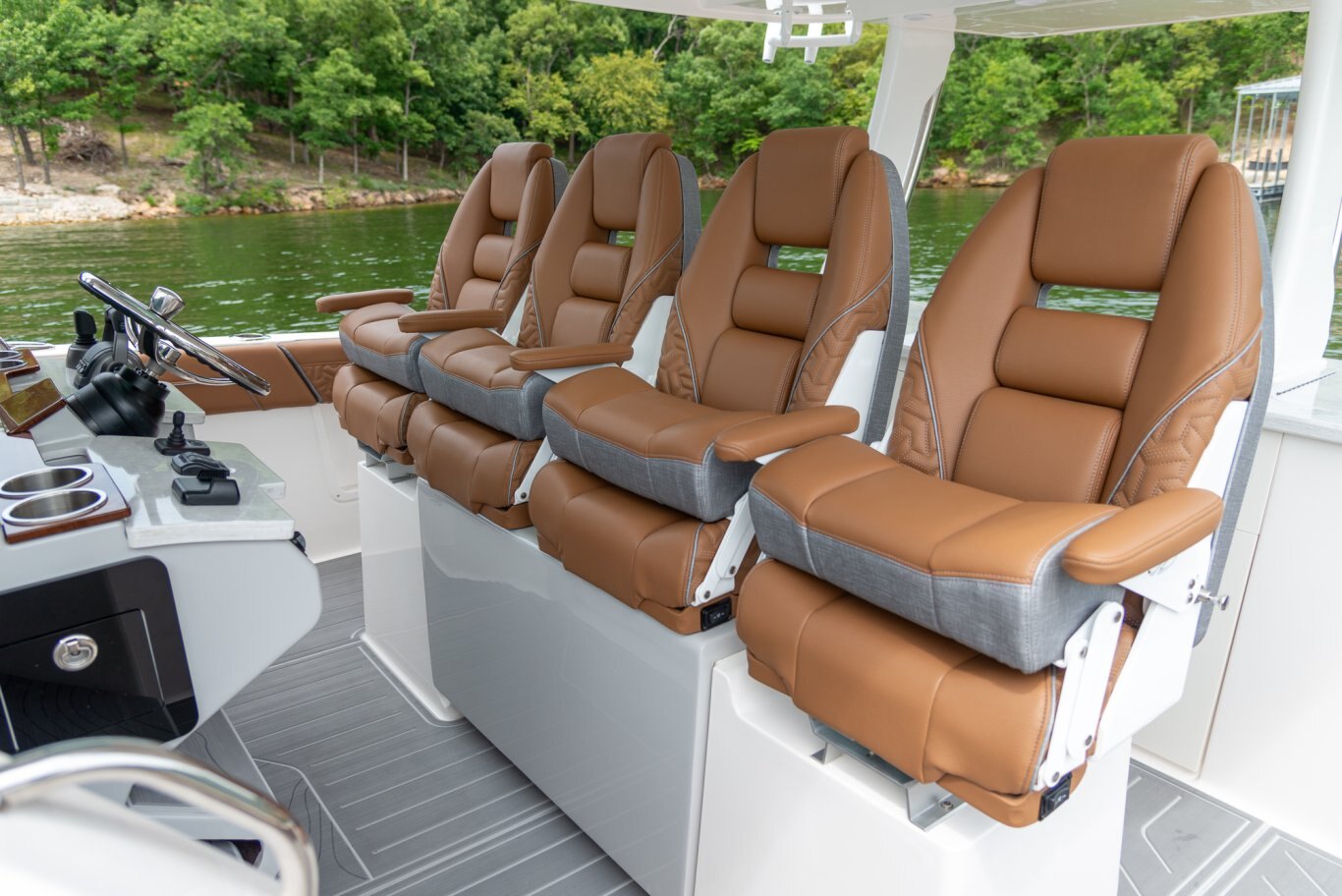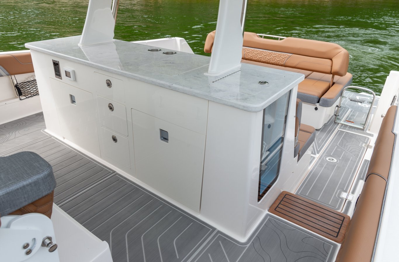 SlideAway seating With the tap of a button, the UltraLounge slides to extend your cockpit seating or swim platform space. |
