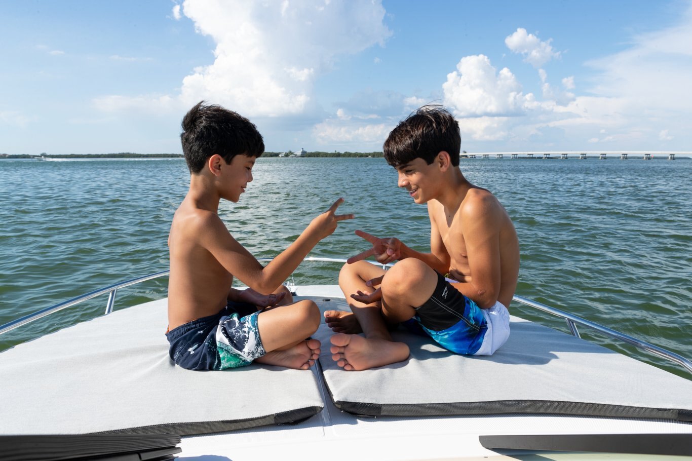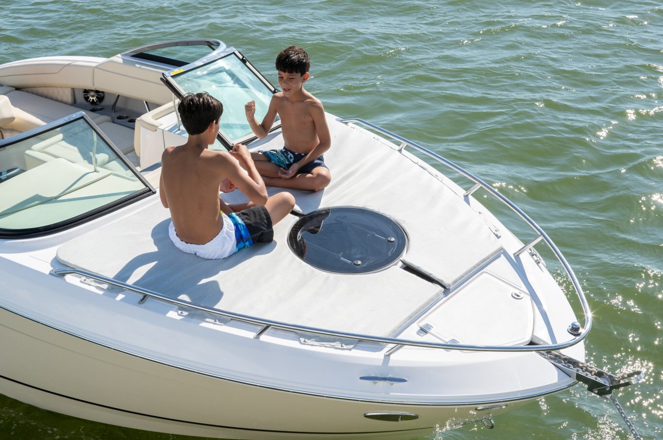 The available foredeck sunpad is a perfect place to hang out and enjoy the view.