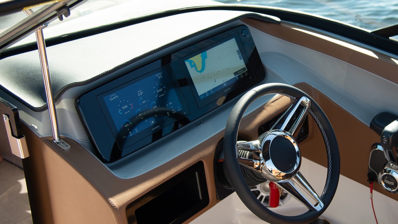 Enjoy dual Garmin 7" displays standard, or upgrade your experience with the dual Garmin 9" displays available at the helm. |