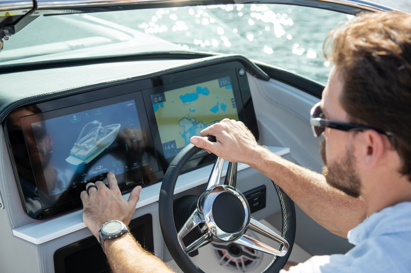 Seamlessly control and monitor your boat's systems with the LS4's standard 9" dual-screen display. Access advanced navigation, entertainment, and boat functions at your fingertips for an enhanced boating experience. If you want to upgrade your technology to the next level, the LS4 Ultimate Trim Series adds dual 12" displays. |