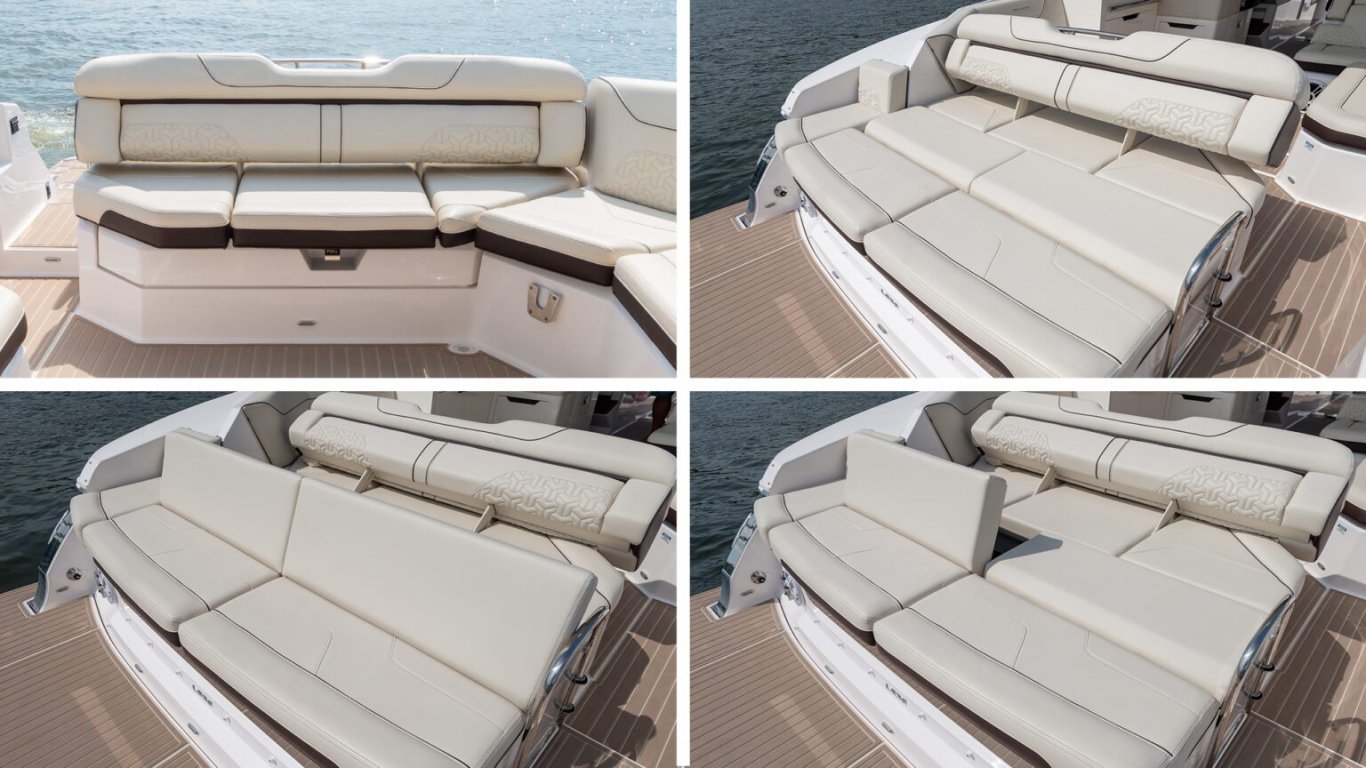 Relax in multiple seating positions, including forward, aft, lounge, or even lay flat for a perfect tan. Flip up the rumble seat backrests to get closer to the action. |