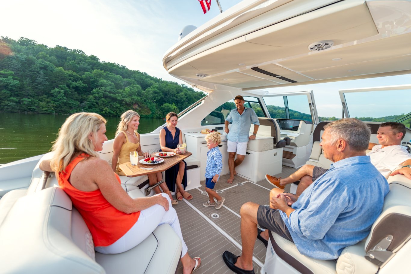 Whether at the helm or as the co-captain, you have full control of your Garmin systems, audio, digital switching, and more. So setting your RGBW lighting, lowering your Power Platform, and a variety of tools are right at your fingertips as the driver or passenger. |