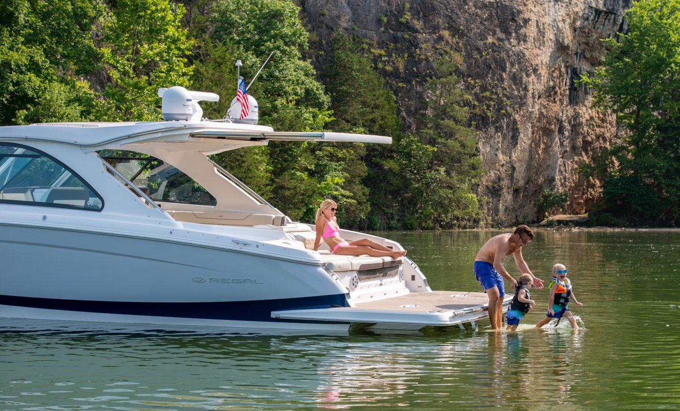 TRULY UNIQUE This model is truly one-of-a-kind. The Regal LS36 features the best of both worlds — performing above expectations as both a luxury yacht and a sporty bowrider — making it a total game-changer. This comfortable bowrider is perfect for taking a smooth sunset cruise or hosting friends and family on the weekends. The innovative tech and thoughtful design throughout the Regal LS36 makes it easy to let the good times roll. |