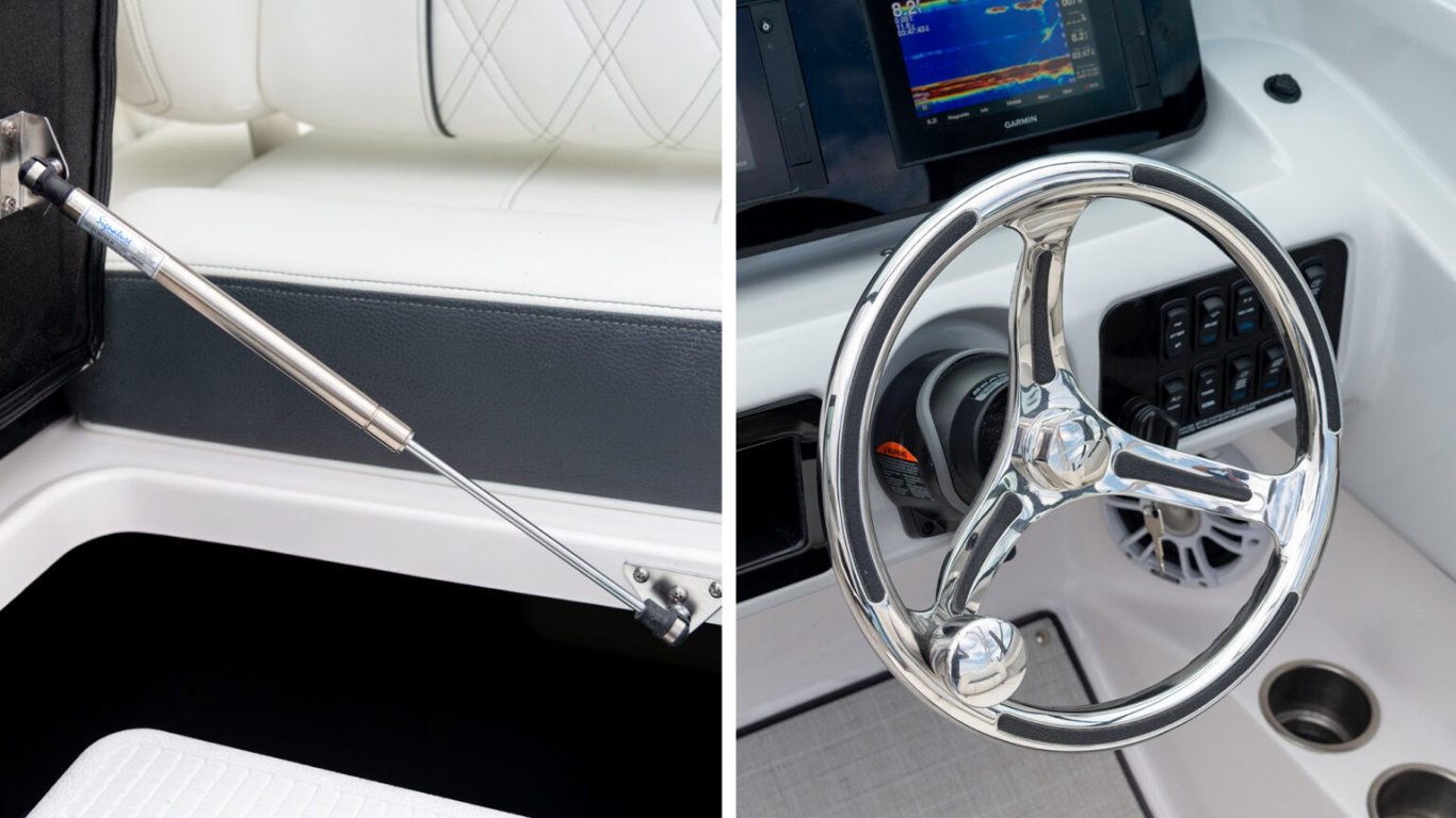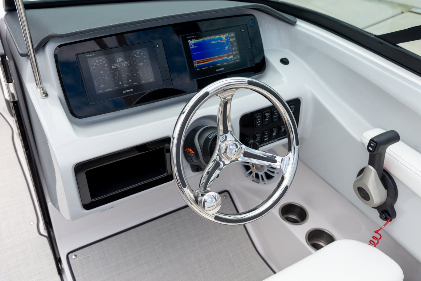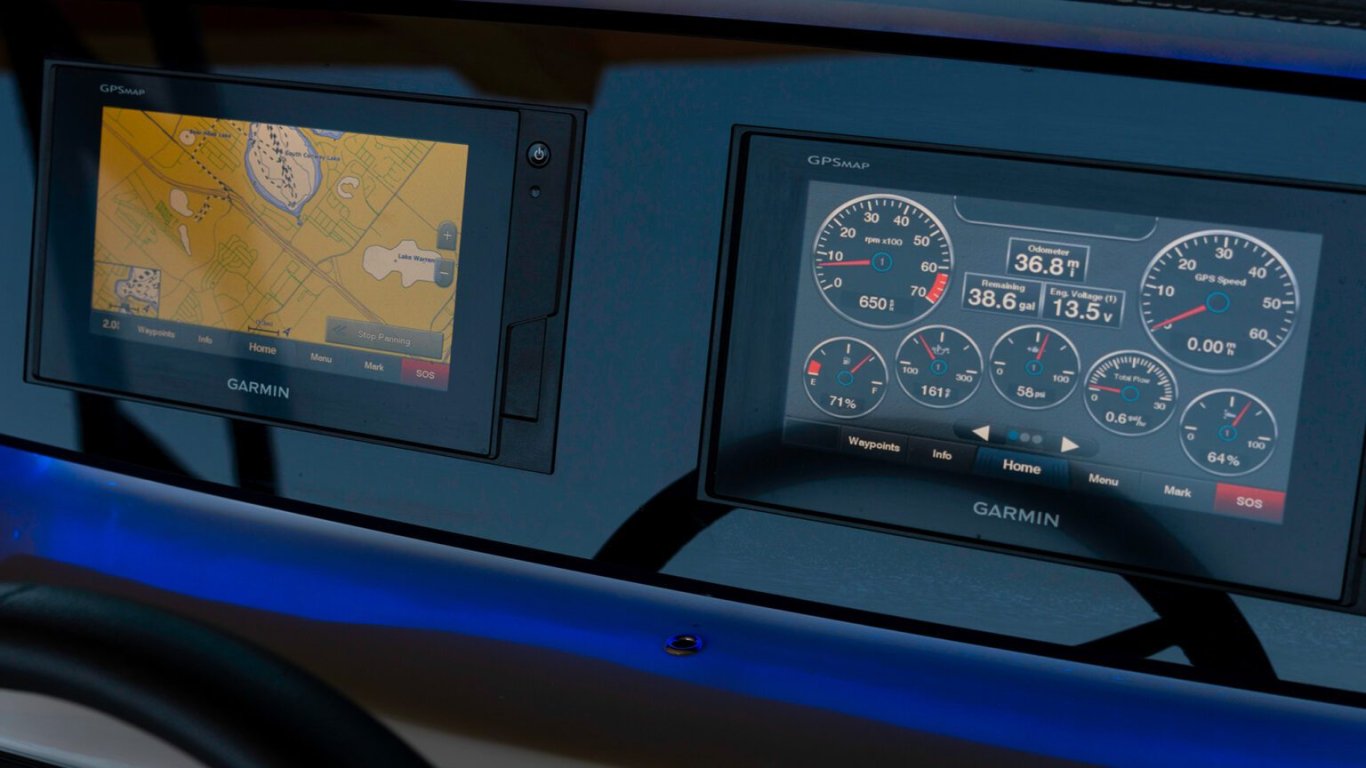 Enjoy dual Garmin 7" displays standard or upgrade your experience with the dual Garmin 9" displays available at the helm. |