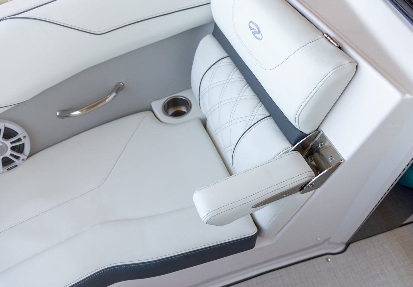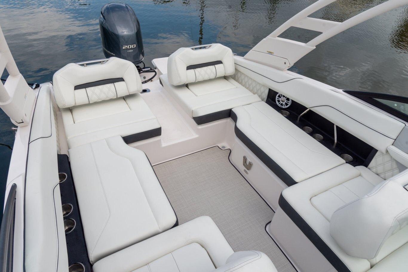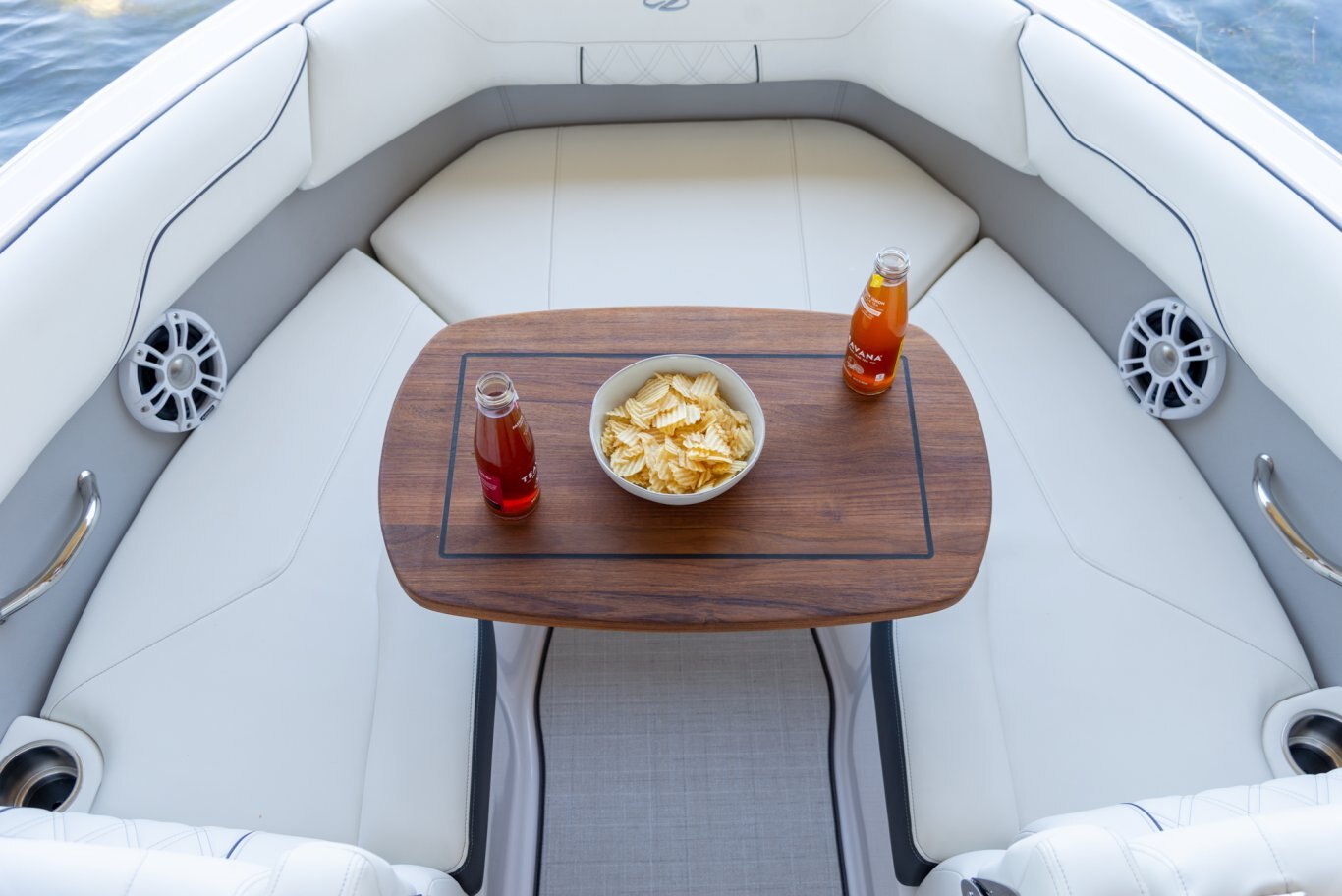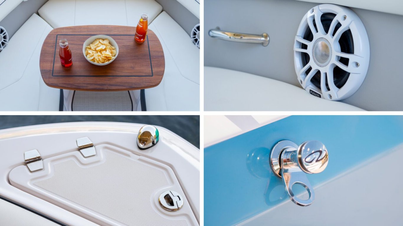 Keep an eye on the finer details. The Regal LX2 features premium standards and upgrades such as stainless steel hardware, a teak table, fender clips, and underwater lighting. |
