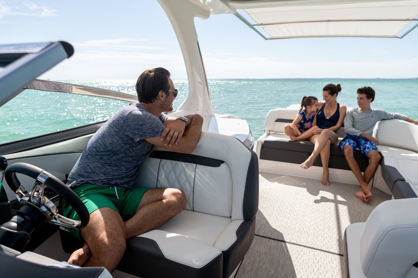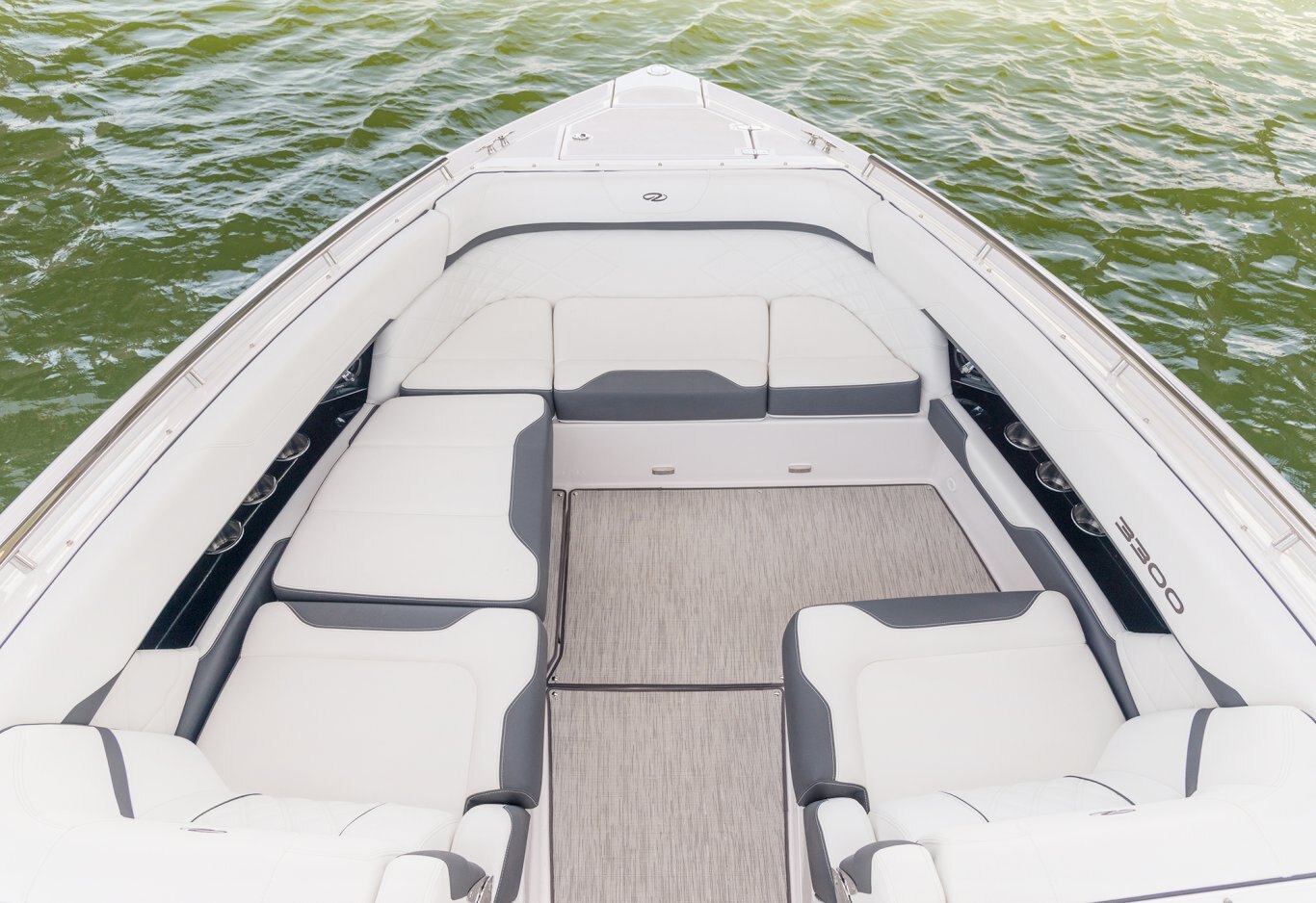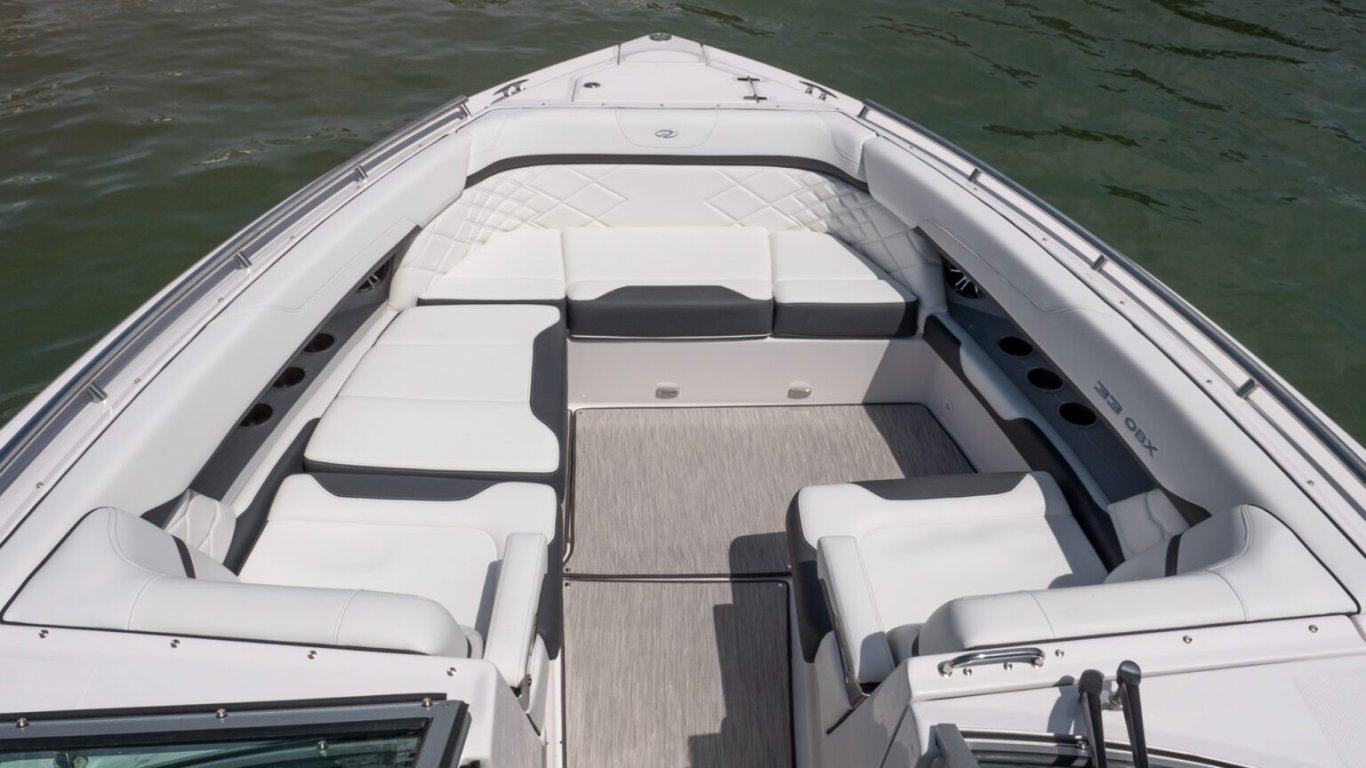 The 33 OBX’s transom is designed to cater to your every need, offering a seamless blend of functionality and luxury. From the multi-position ultralounge for lounging in style to the expansive wrap-around swim platform for effortless water access, enjoy the ultimate comfort and relaxation on the water. |
