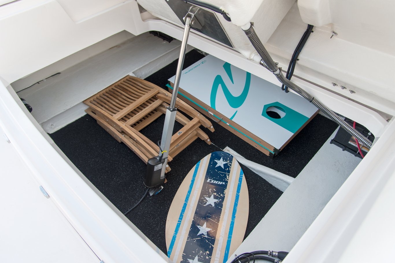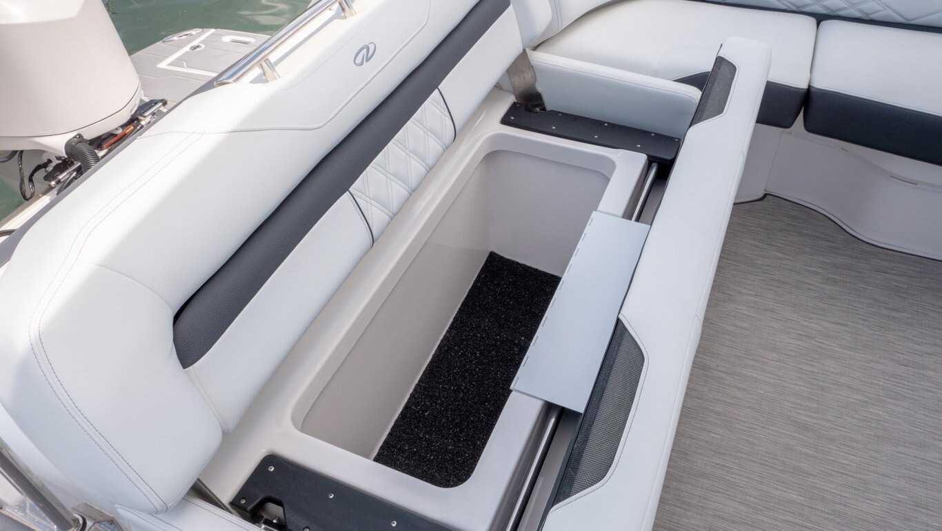Embrace the abundance of storage options aboard the 33 OBX, providing a dedicated place for everything you need on your adventures. Leave nothing behind, thanks to the massive Lazarette storage. From the spacious compartments to storage under every seat. Enjoy the freedom to bring your essentials and keep everything organized. Gas-assisted rams make lifting the storage compartments effortless, ensuring easy access to your gear. |