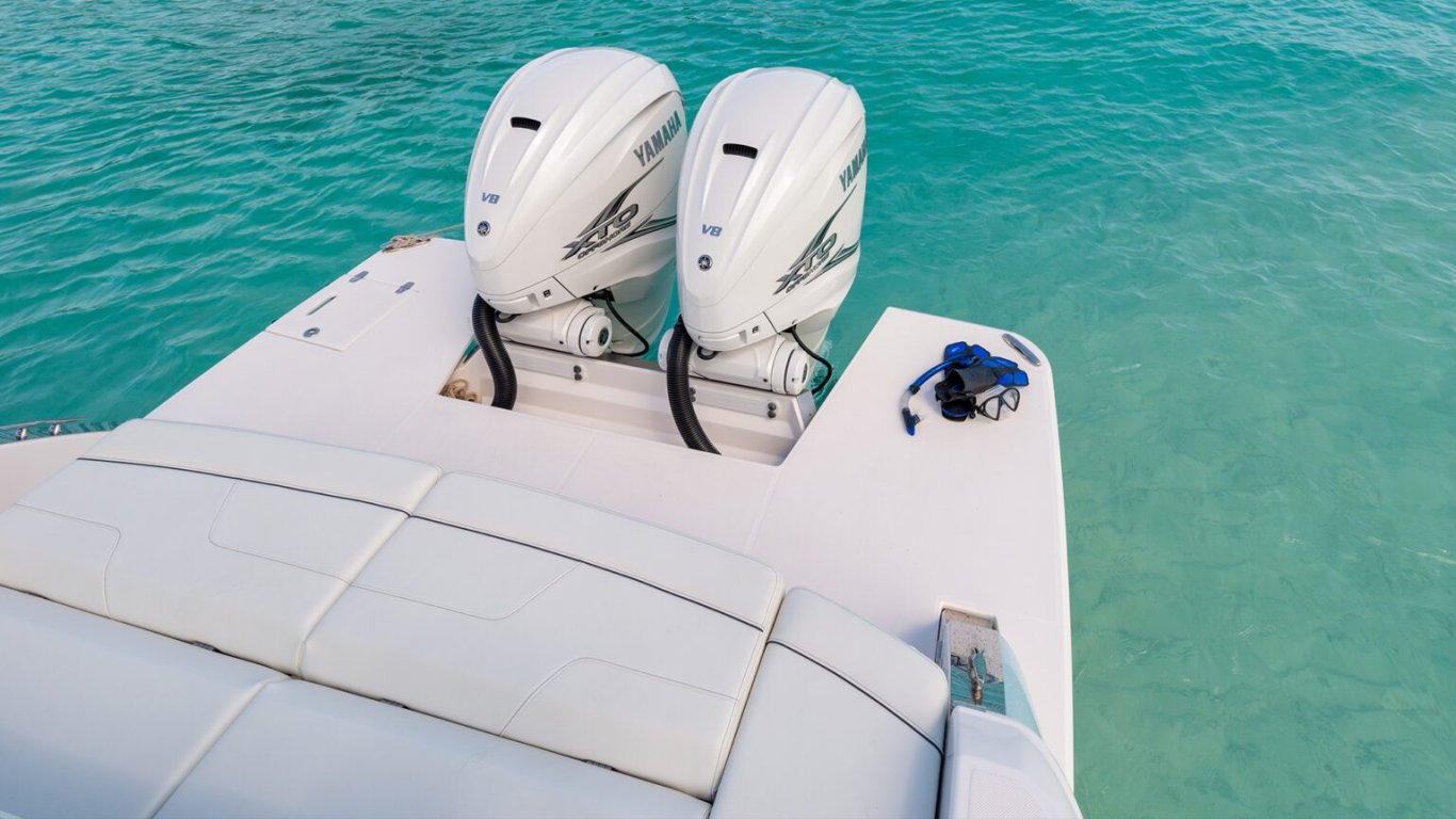 Easily access the water with the low-to-the-water swim platform that wraps around the outboards. |