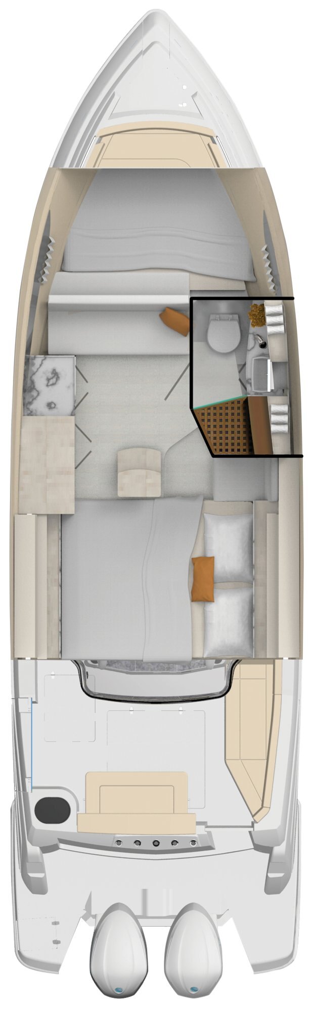 Enjoy effortless boarding and docking with the convenient side-entry door, providing seamless access to the boat from any dock or marina. |