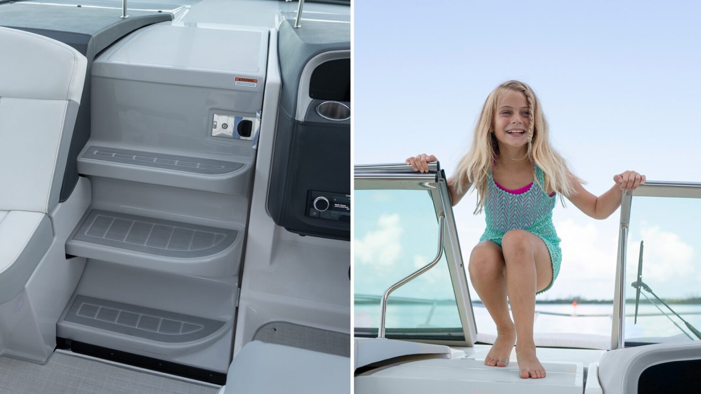 Steps are integrated into your cabin door for easy access to your foredeck. |