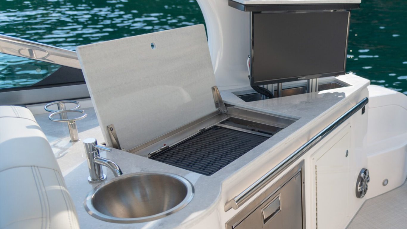 The 33 XO's refreshment center will quickly become the perfect spot to entertain your guests all day long. |