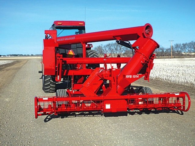 The RENN FBU 1014 Unloader has many of the same operational features as the RENN 1214 CD and RGU 1218 CD, and smoothly unloads 9' and 10' grain bags. The FBU 1014 has a volumetrically balanced grain transfer box that easily moves grain into the 14″ boost auger, then into a 12″ folding discharge auger to maximize capacity and efficiency.