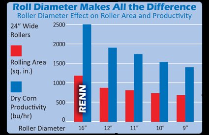 Maximize Productivity RENN Roller Mills have a proven record of excellence in the grain processing industry for maximizing productivity while providing durable, consistent performance and easy serviceability. For 60 years the heart of the RENN Roller Mill has been its precision-machined 16” diameter rolls, which provide more grain rolling Cast-Rolls-Web11-300x166.pngarea per revolution compared to other brands of roller mills with smaller diameter rolls. RENN Roller Mills save time and money year after year by rolling more grain per hour with less horsepower. RENN’s unique, centrifugally-poured, chill-cast rolls are its latest advancement in rolling technology, giving you the long-wearing durability of cast rolls with the enhanced serviceability of removable shafts and end plates.