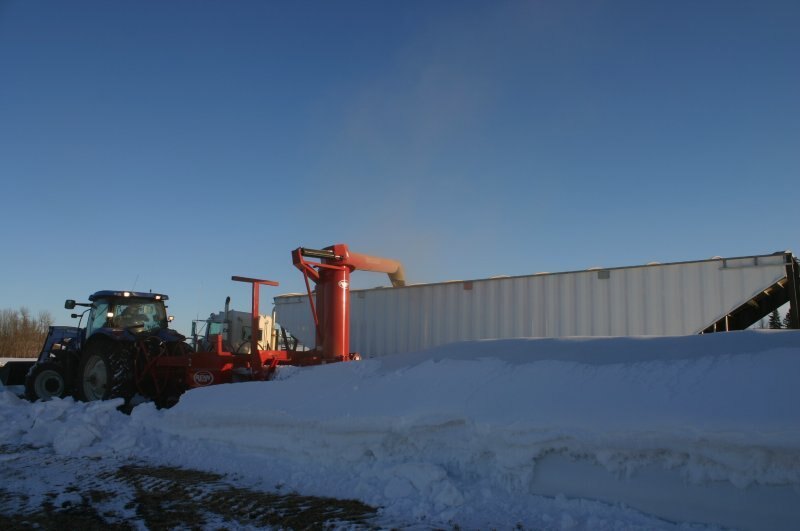 The RENN FBU 1014 Unloader has many of the same operational features as the RENN 1214 CD and RGU 1218 CD, and smoothly unloads 9' and 10' grain bags. The FBU 1014 has a volumetrically balanced grain transfer box that easily moves grain into the 14″ boost auger, then into a 12″ folding discharge auger to maximize capacity and efficiency. |