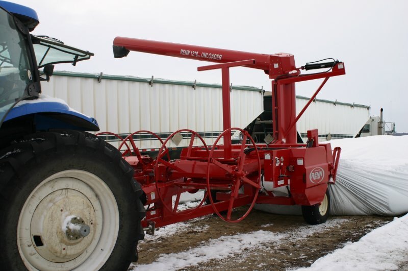 Superior Plastic ManagementThe RENN Onboard Recycle-Ready Plastic Management System uses RENN’s unique hydraulic ratchet system to wind the spent bag onto rear rewind spools, keeping the plastic clean for recycling. Once unloading is complete, the plastic is rewound into a recycle-ready package, which slides easily off the collapsible rewind spool. Operators appreciate the time savings and simplicity of this grain bag windup system. The RGU 1218 CD Grain Bag Unloader has been designed to carry and process an entire 12’ x 500’ grain bag. Switching from transport to operating mode is a simple task requiring minimum effort and no tools; the operator just backs into the grain bag and lowers the machine. Designed and built to operate in Western Canada’s harshest field and weather conditions, RENN Unloaders allow farmers to empty a grain bag anywhere, at any time, efficiently and with minimal effort. |