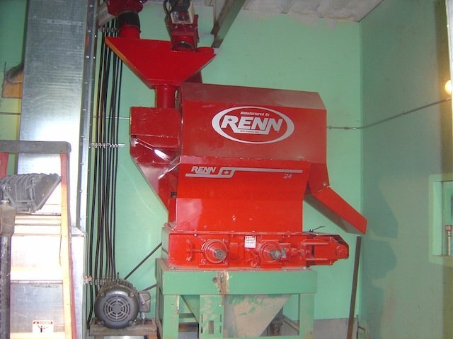 Lower Power RequirementUnlike conventional, solid-core cast rolls, our 16” diameter casting with a 3” thick sidewall provides the performance of chill-cast rolls with the advantage of a lower power requirement and better economics, as you are no longer paying for the unusable centre core of the roll. The RENN Roller Mill design ensures operator efficiency and time-saving serviceability. The RENN worm drive roll adjustment allows for easy roll gap adjusting while the RENN leaf spring holds the rolls in place for maximum rolling capacity. The rolls can be pulled for service in minutes due to RENN’s tip-up top hopper and split frame design, making it fast and easy to re-groove and re-install them, for thousands more tonnes of trouble-free rolling. |