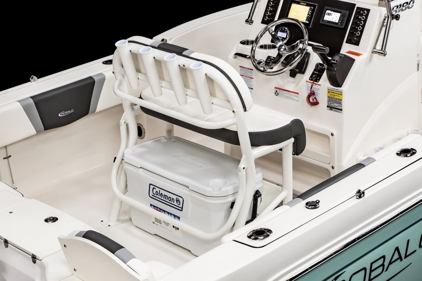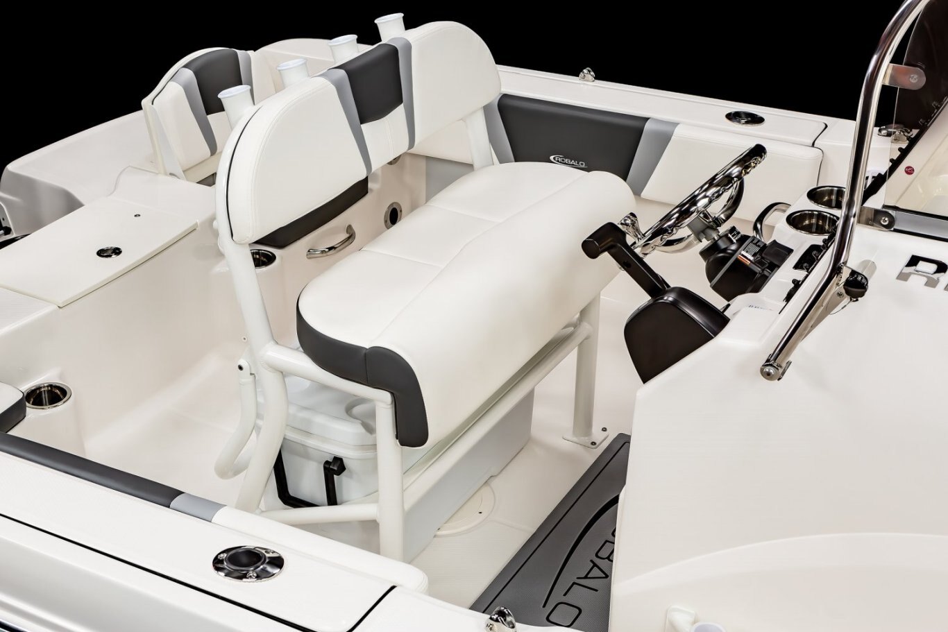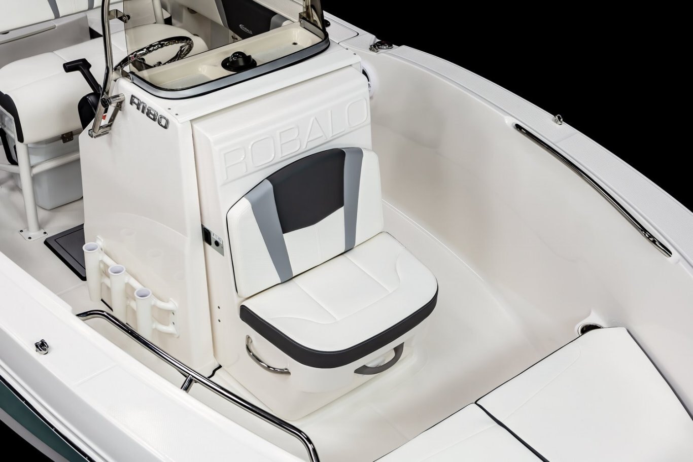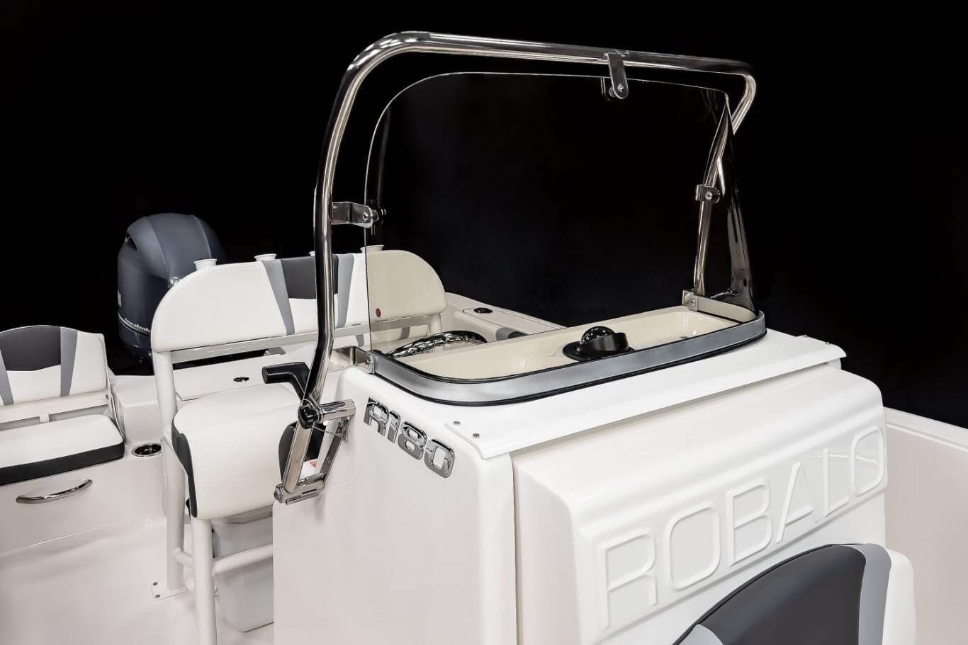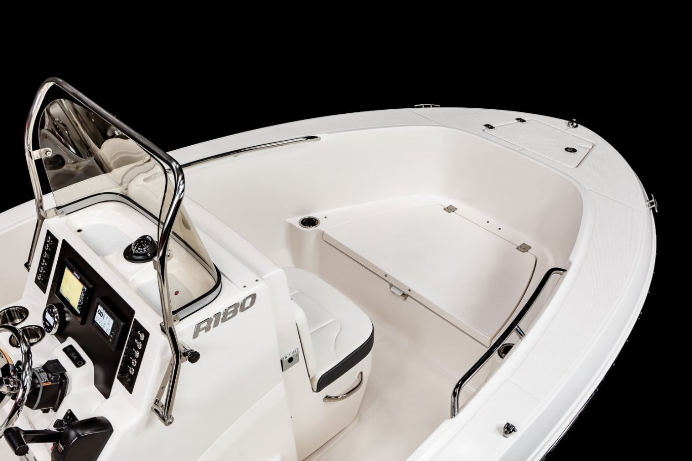 The R180 was specially crafted with adventure in mind. This vessel is equipped with twin aft seats with heavy duty hardware, making these seats durable as well as comfortable. The seats also fold away allowing the boat to be very functional for fishing. Storage is available under both aft seats and allows easy access to onboard systems and speedy servicing. A telescopic boarding ladder invites you to enjoy the R180 for wakeboarding, swimming, diving, snorkeling, or just good old-fashioned family fun.