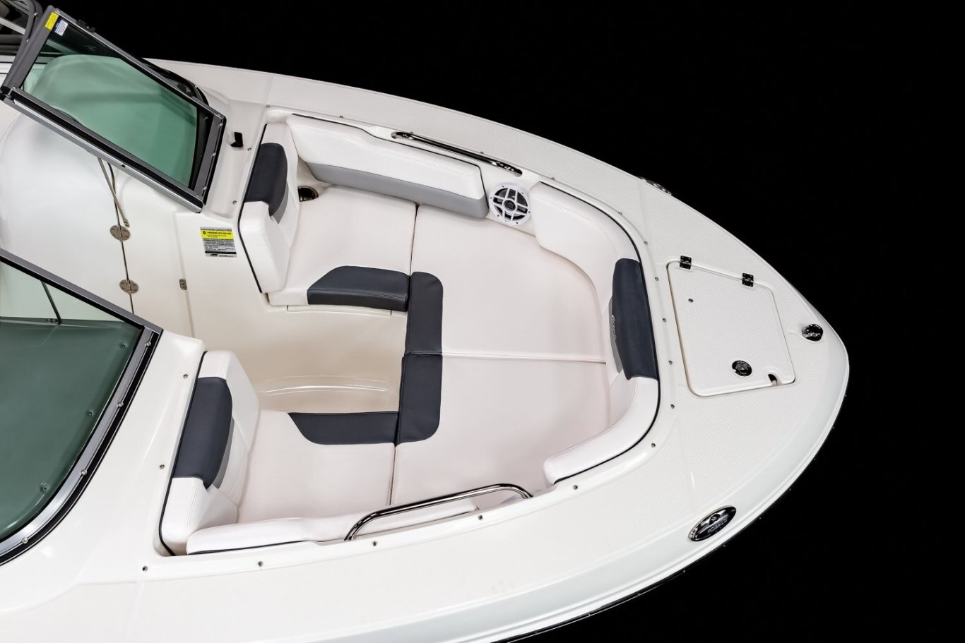 12V DC Receptacle on Dash 12V Wiring Buss Inside Console Aluminum Instrument Panel with Weatherproof Switches and Circuit Breakers Bilge Pump with Automatic Switch Digital Gauges Electrical Connectors Triple O-Ring Sealed and Water Tight Lighted Compass Molded Electronics Face with 12V Wiring Buss Behind Console Molded-In Footrest at Helm Navigation Lights - LED SeaStar Tilt Hydraulic Steering Stainless Steel Steering Wheel with Control Knob Stereo System - AM/FM Radio with Bluetooth and Water Resistant Speakers (4) with Blue LED Lighting Tinned Copper Wiring with Waterproof Connectors