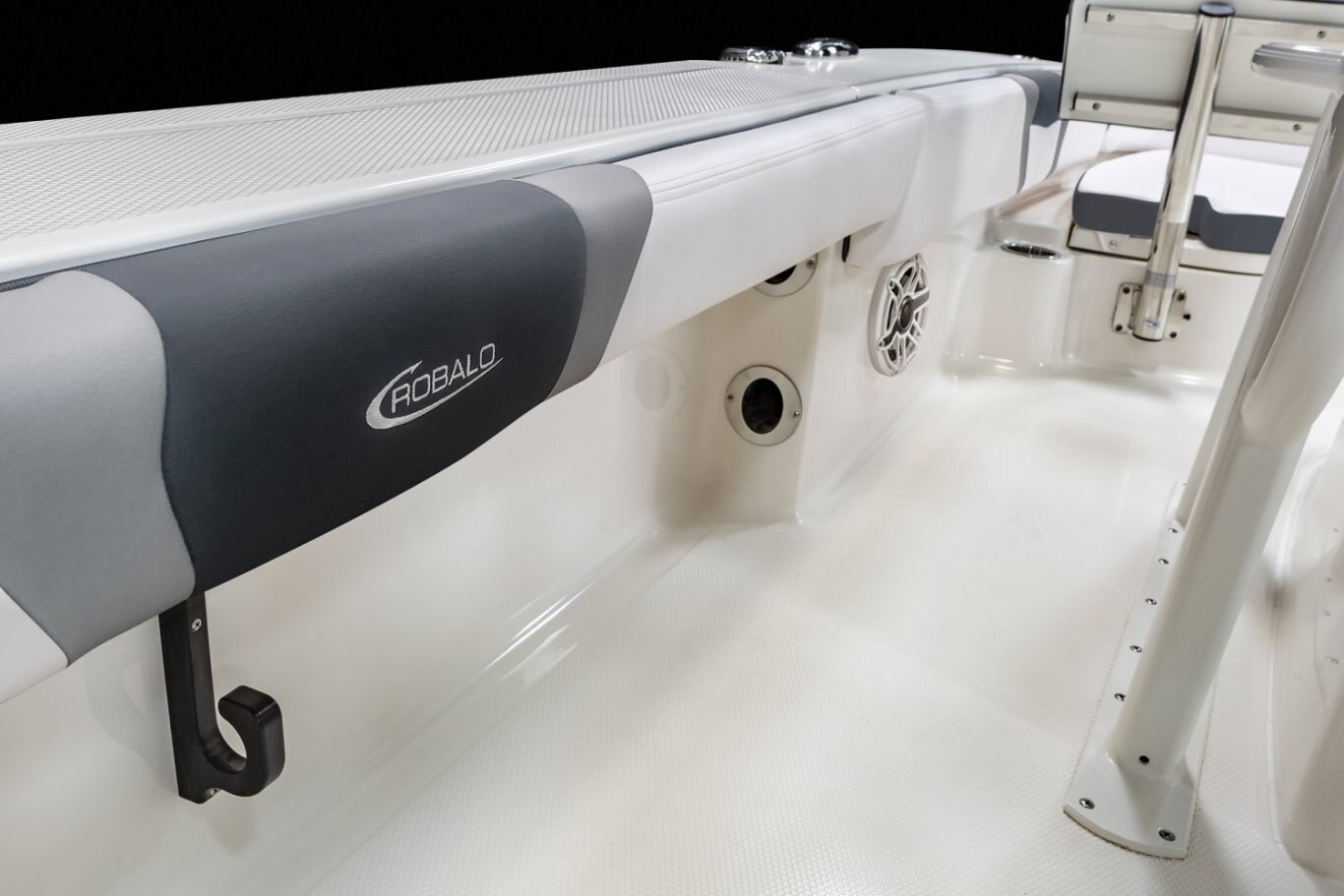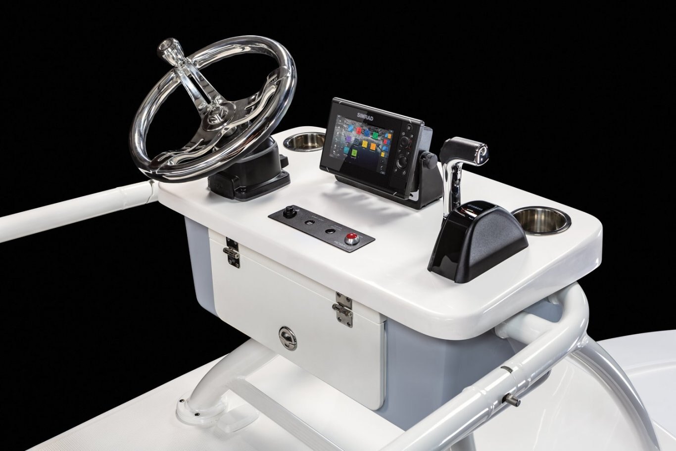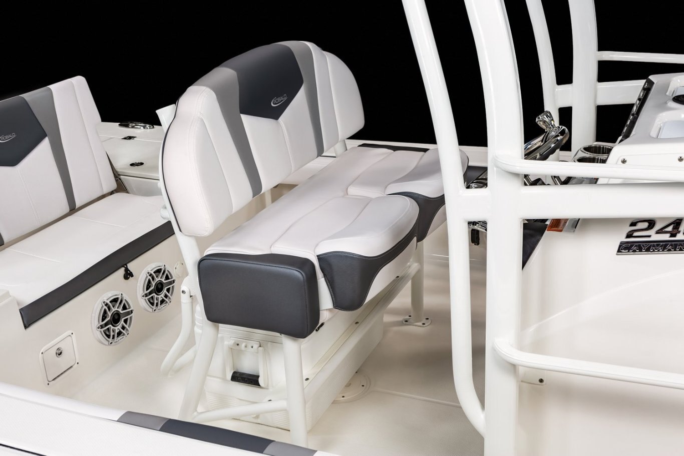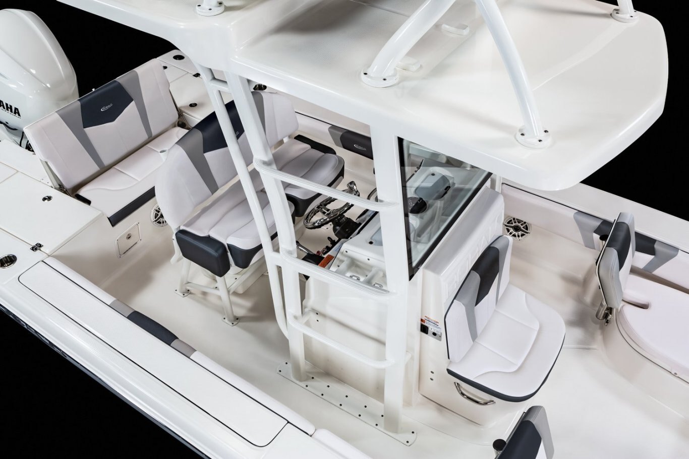 Standard FeaturesAft Double-Wide Seat with Folding Backrests and Custom Stainless Steel Hardware (Converts to Casting Platform) |