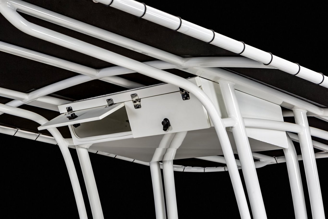Optional Features Bimini Top with Boot Leaning Post Cover and Console Cover Mooring Cover Standard - No Tower T-Top (Black Powdercoated) T-Top (White Powdercoated) T-Top Electronics Box