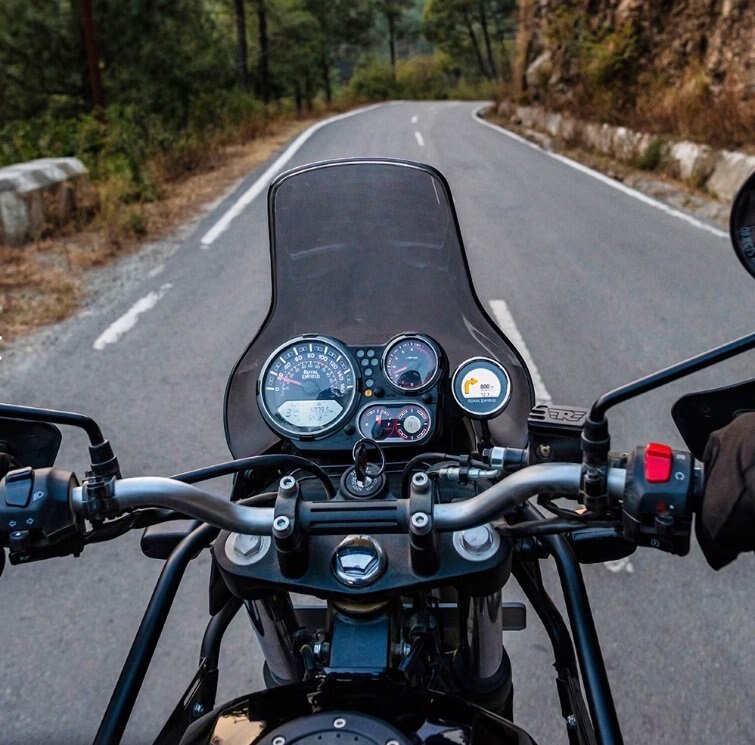 The new improved seat lets you cover longer distances with even more comfort. Panniers at the back. Jerry cans in the front. The Himalayan's mounting points let you strap up and set off anytime. The LCD dashboard lets you track everything from miles to maintenance.
