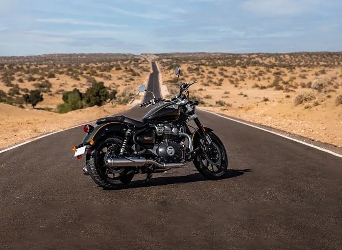 The spacious, teardrop tank on the Super Meteor 650 can carry up to 15.7 liters of fuel, ensuring that even the longest of rides continues uninterrupted.