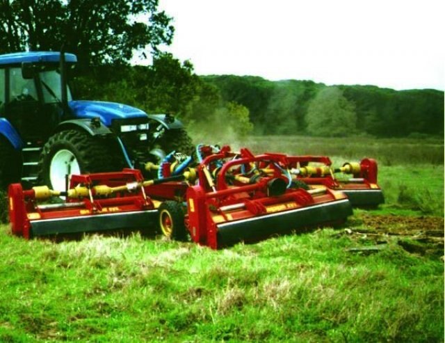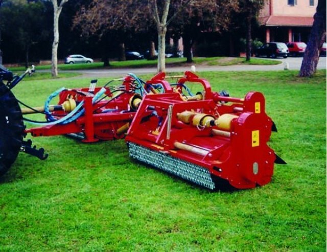 Combined mulchers reach working widths of as much as 7 m [276“]. OLS multipla is ideal for mulching of large areas such as parks, airports, or uncultivated land. Three independent mulching mowers are trailed on a chassis with 2 wheels. The mulching heads perfectly follow the contours of the ground. The width and the strength of these large mowers makes possible to mulch at a high speed, while leaving a clean result. Counterknives inside the casing of mulchers give a perfect mulching result. There is a 35 cm [14”] side shift to each side on each mulching head. Combined machines like the OLS multipla are made of 3 single units - mulcher type OLS fh, liftable for transport and parking. The central mulcher has a 3-point linkage and can be used independently. |