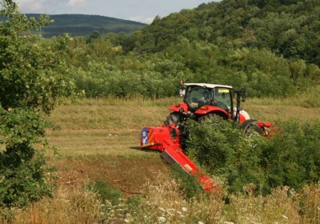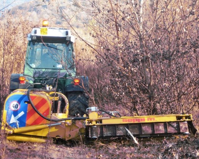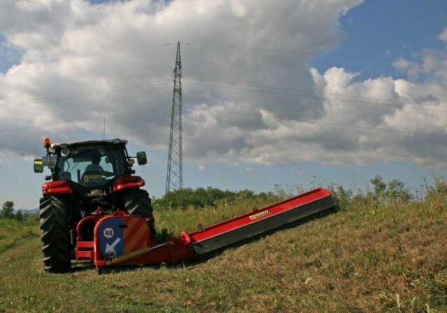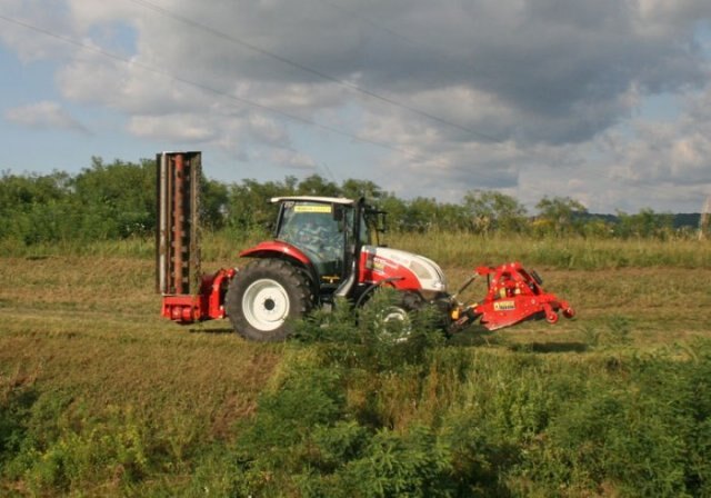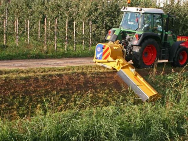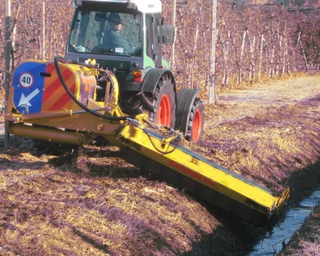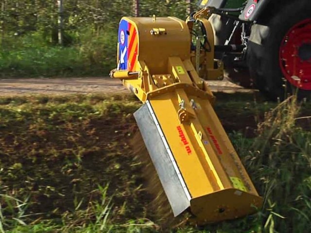 SAV is a professional side mulcher for ditches, canals and river banks. This universal mulcher also does a great mulching job on steep road sides, orchards and vineyards or also in forestry. Great versatility is achieved by ample hyd. side shift in addition to hydraulic angling from 90° up to 65° down.