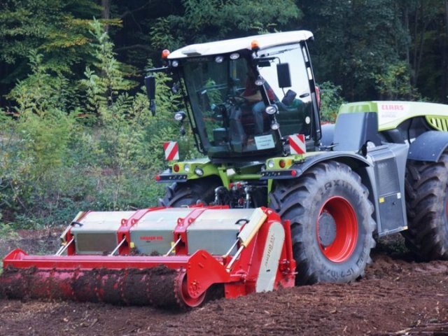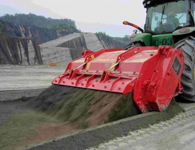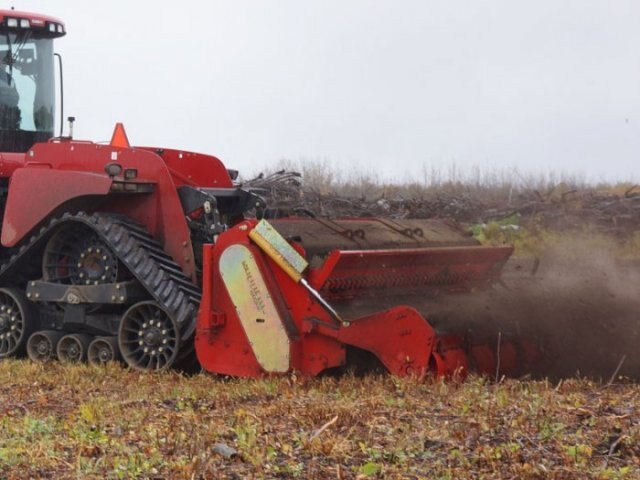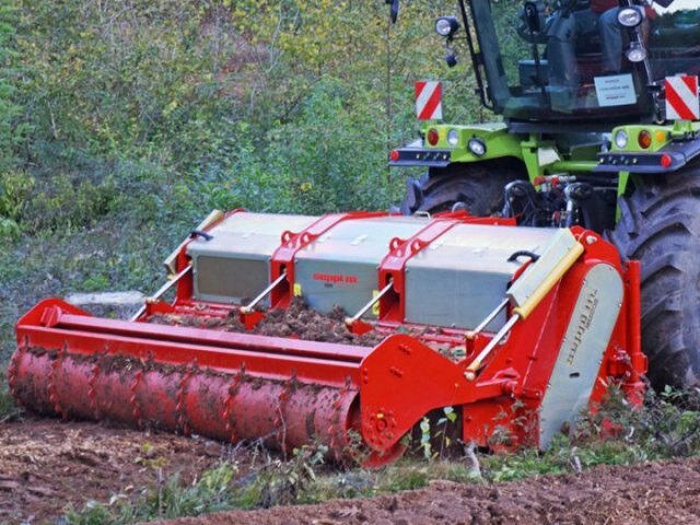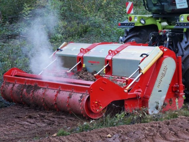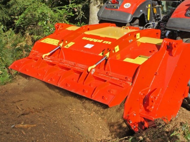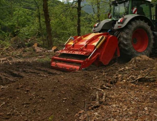 The MAXISOIL is a multifunctional tiller-mulcher. It tills soil and roads, mills stumps and mulches wood. It is ideal for maintaining dirt roads, for land reclamation, for the preparation of ski slopes, to clean up slash after felling operations. MAXISOIL is suitable for tractors with a power class between 300 and 450 HP. The patented rotor has an optimised combination ofnew SUPER MONO PROTECT™ and SUPER MONO EXTREM™ hammers with tungsten carbide inserts. The machine is fitted as standard with a transmission cooling system integrated with the remote temperature control device that eliminates the risk of overheating of the transmission if the work is interrupted. The frame is fully protected with interchangeable Hardox® wear-proof plates. In standart version is ADAM™ cardan alignment system to improve how the machine adapts to the soil. This ''angular compensation'' feature is used to protect the cardan shaft and the tractor PTO and MAXISOIL from unnecessary stress caused by differences in soil. Adjustable crushing bar and grill to obtain the desired degree of crushing and hydraulically adjustable hood are also the basic features. The biggest forestry tiller and stone crusher MAXISOIL 350 in the world: Following a request from our North American operators, we developed a mulcher-tiller-crusher with extreme dimensions. Following successful tests, we can now present the MAXISOIL 350 tiller-crusher with unprecedented dimensions. Thanks to its sturdiness and advanced know-how, a powerful, safe and reliable machine with top operating efficiency levels has been created. The powerful MAXISOIL is equipped with a water injection system to bind and stabilize the soil and cool the hammers. Available working width : 250, 350 cm [ 98", 138" ]. |