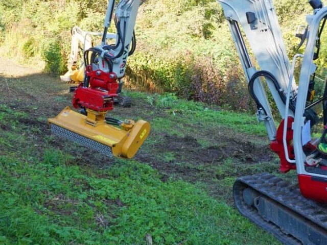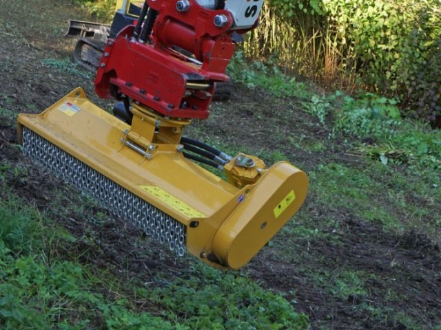 The new type of excavator mulcher H3 ™ is replaceing of H-SML ™ . This lightest excavator attachment from SEPPI M. comes with reinforced frame made of wear-resistant steel (Hardox ® ) for a very long life. H3 head is ideal for mounting on mini-excavators for the maintenance of small greenspaces, riverbanks and canals, right of way clearing and green spece maintenance. New are thereinforced b earing and and stronger support roller and reinforced frame made of wear-resistant steel for a very long life. The mechanical float adaptor to follow the contours of the ground is now in standard version. New DRAIN SAFE™ safety valve protects the motor in case of incorrect use! Available working width: 60, 85, 105, 125 [25", 33", 41", 49"] |
