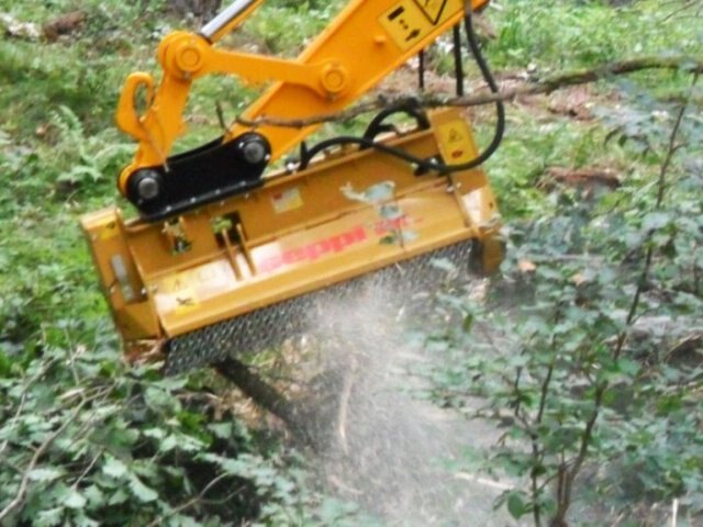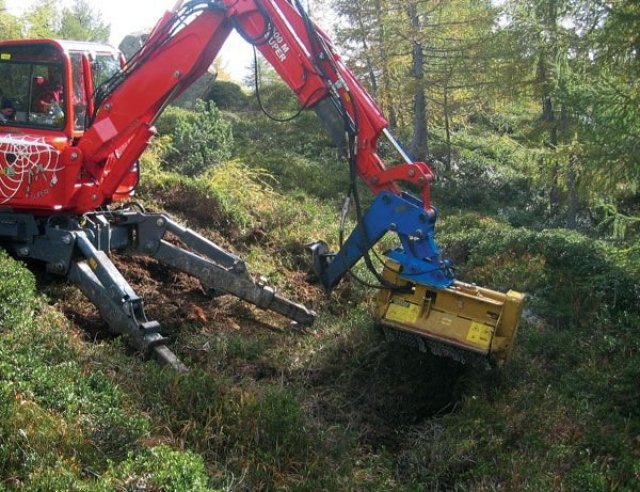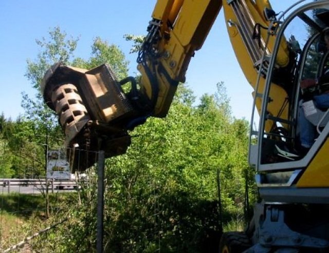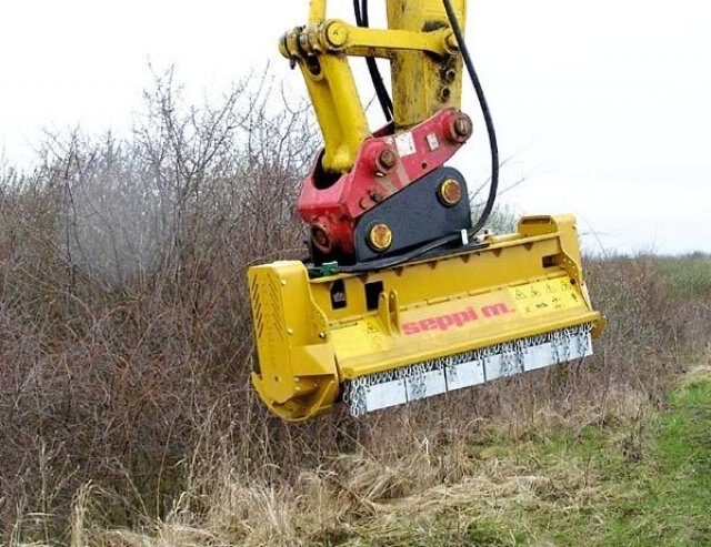 The SEPPI M. mulching head BMS-L™ has been developed for medium size excavators. It is strong mulcher, at a relatively light weight. Mounted on the arm of an excavator, BMS-L mulcher will show great results in greenspace maintenance on riverbanks, in the forest and in other areas difficult to reach. Suitable for different types of vegetation management, right of way maintenance, clearing forests after harvesting wood and much more. With its optional double adjustable hood, the BMS-L head can work in two directions and is easiliy adaptable to the working conditions. Many specific situations determined by the type of vegetation, the soil and the environment will thus be easy to handle! With its standard rotor, the BMS-L mulches brush up to 7 cm [2.8"] in diameter, with the optional forestry rotor with swinging hammers the mulcher can brush material up to 12 cm [4.7"]. BMS-L it suitable for mounting on excavators or forwarders of different brands. Available working width: 100, 125, 150 [39", 49", 59"]. |