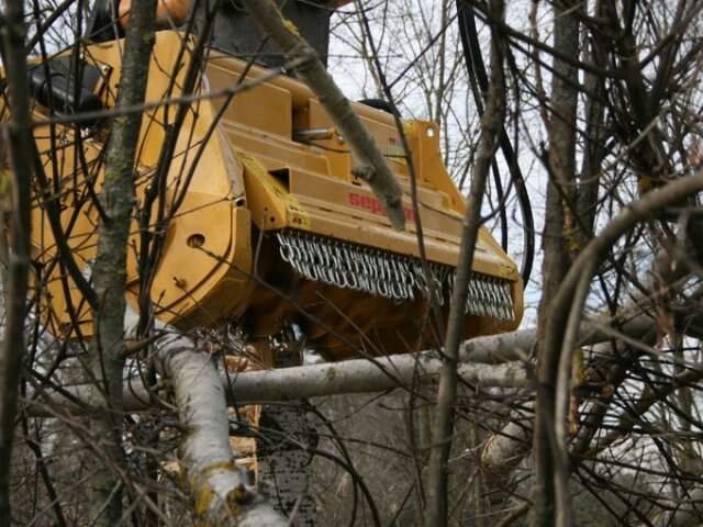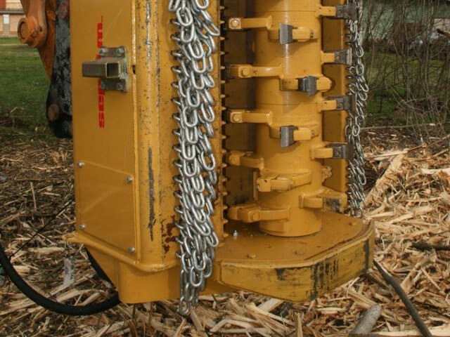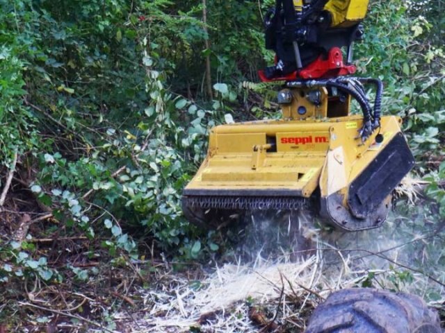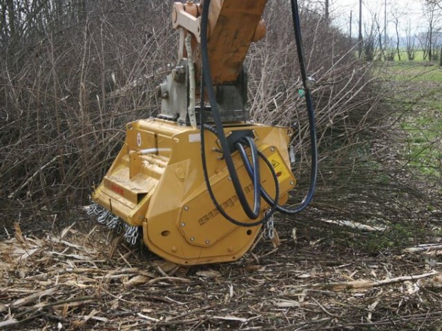 Newly updated, the SEPPI M. excavator mounted forestry mulcher BMS is more efficient, more productive, and has an attractive new design. Designed for excavators in the 15 - 25 ton class (30,000 - 55,000 lb), grass, brush and wood are easy to mulch. Attached to the arm of an excavator, all these areas can easily be reached. The BMS mulching head comes with a forestry rotor able to mulch vegetation up to 25 cm [10"] in diameter. Covered chassis protects the drive. Forestry rotor with doubleside swinging hammers with tempered counter knives inside the casing standard for very fine mulching result. The new version of SEPPI M. BMS mulching excavator attachment is designed and engineered to make your operation more efficient and profitable. BMS is now: More efficient due to an improved rotor with additional exposure. More power due to motors M-BOOST ™ with up to 40% more torque. Safer due to improved protection systems. Available in working widths: 100, 125 150 cm [ 39", 49", 59" ] |