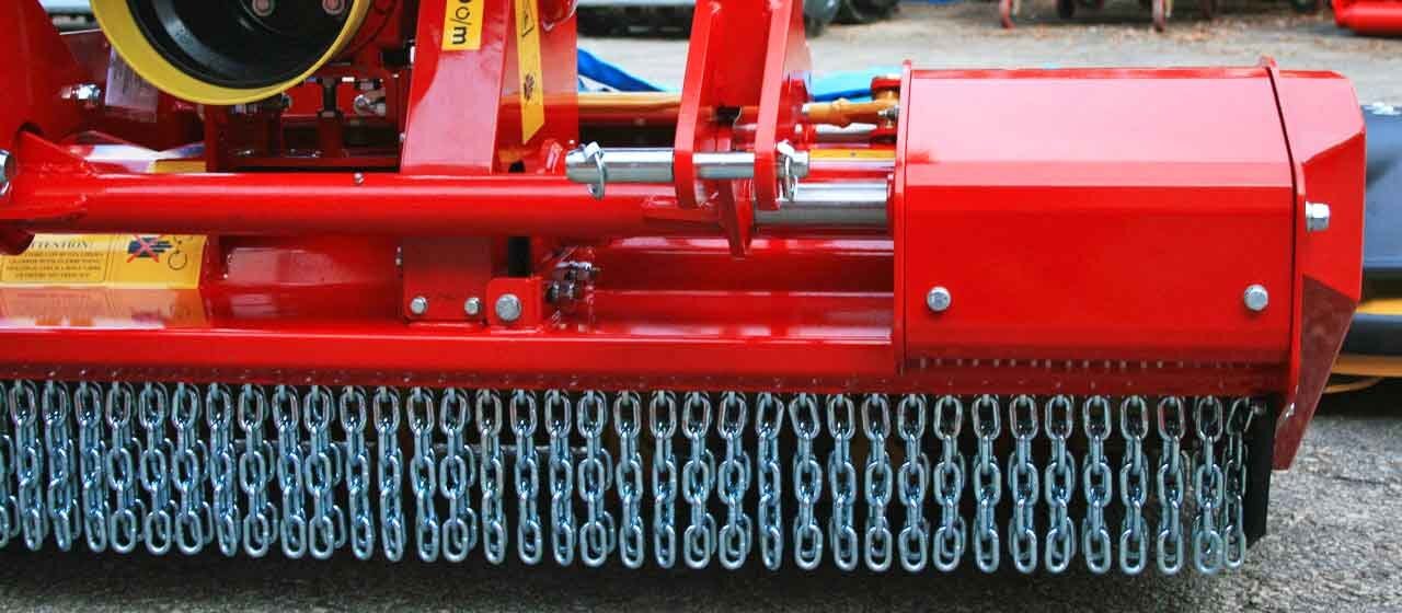 Helical distributed and high resistent SMW-flails for universal use are for high cutting quality at uniformly distributed power. SMWA slim casing is very resistent, made of high-tensile steel. Double counterknives inside the casing will give a perfect result when mulching. Adjustable roller with double tapered roller bearings unit for a long life and the low maintenance costs. Adjustable roller is positioned close to the rotor improves mulching on uneven ground and prevents scalping.